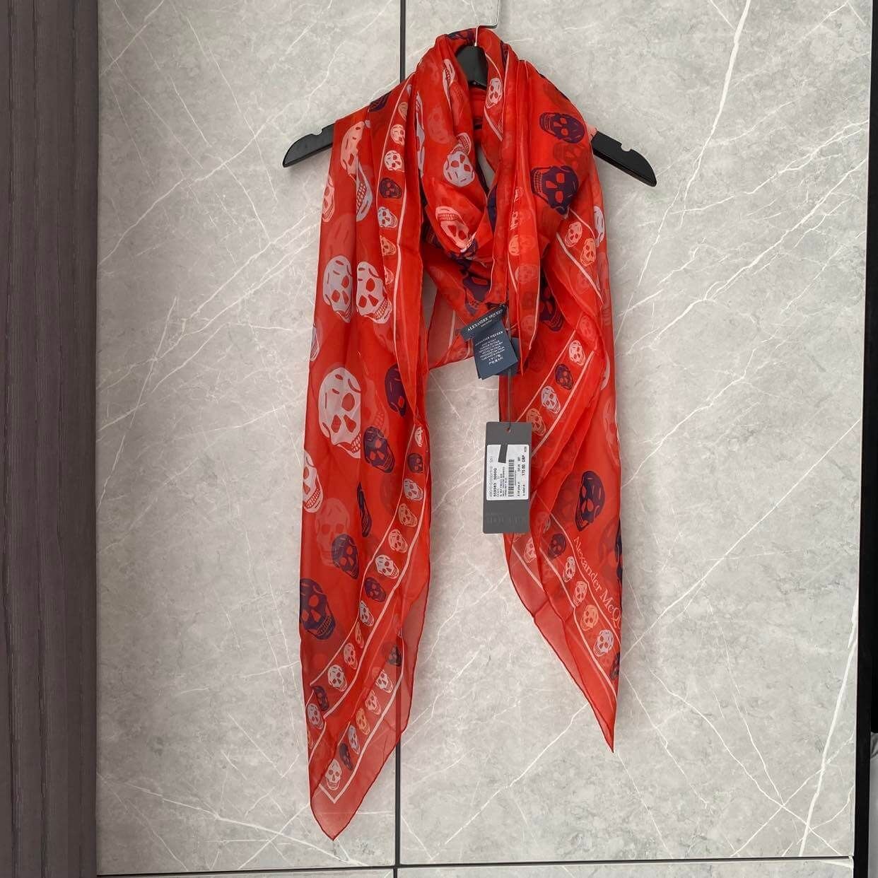 Khăn MCQ Đầu lâu nổi tiếng nhà MCQ, em về được màu đỏ cam tươi tắn, dùng đc nhìu kiểu ce nha