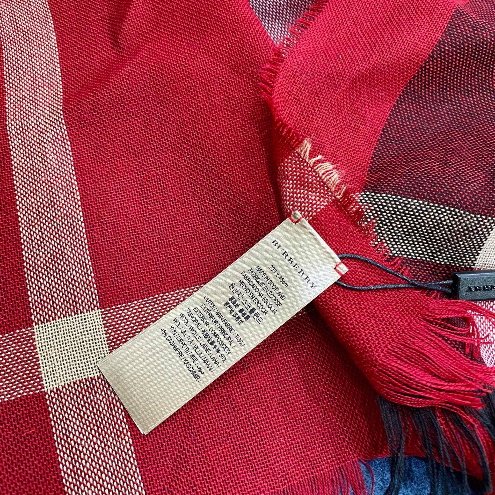 Một chiếc khăn kẻ đỏ ấm ấp với chất liệu 45% cashmere + 55% len chắc chắn sẽ làm chị em thích