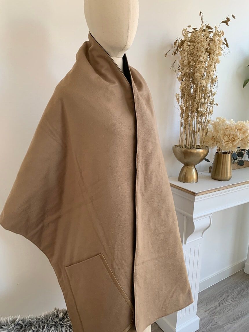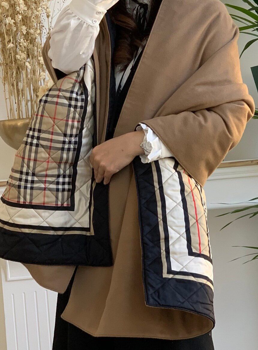 Một chiếc áo choàng BBR TB màu beige siêu đẹp, em này rất đa zi năng đó ah, làm áo choàng, làm khăn, làm chăn đắp khi, hay mên trang trí đều okela