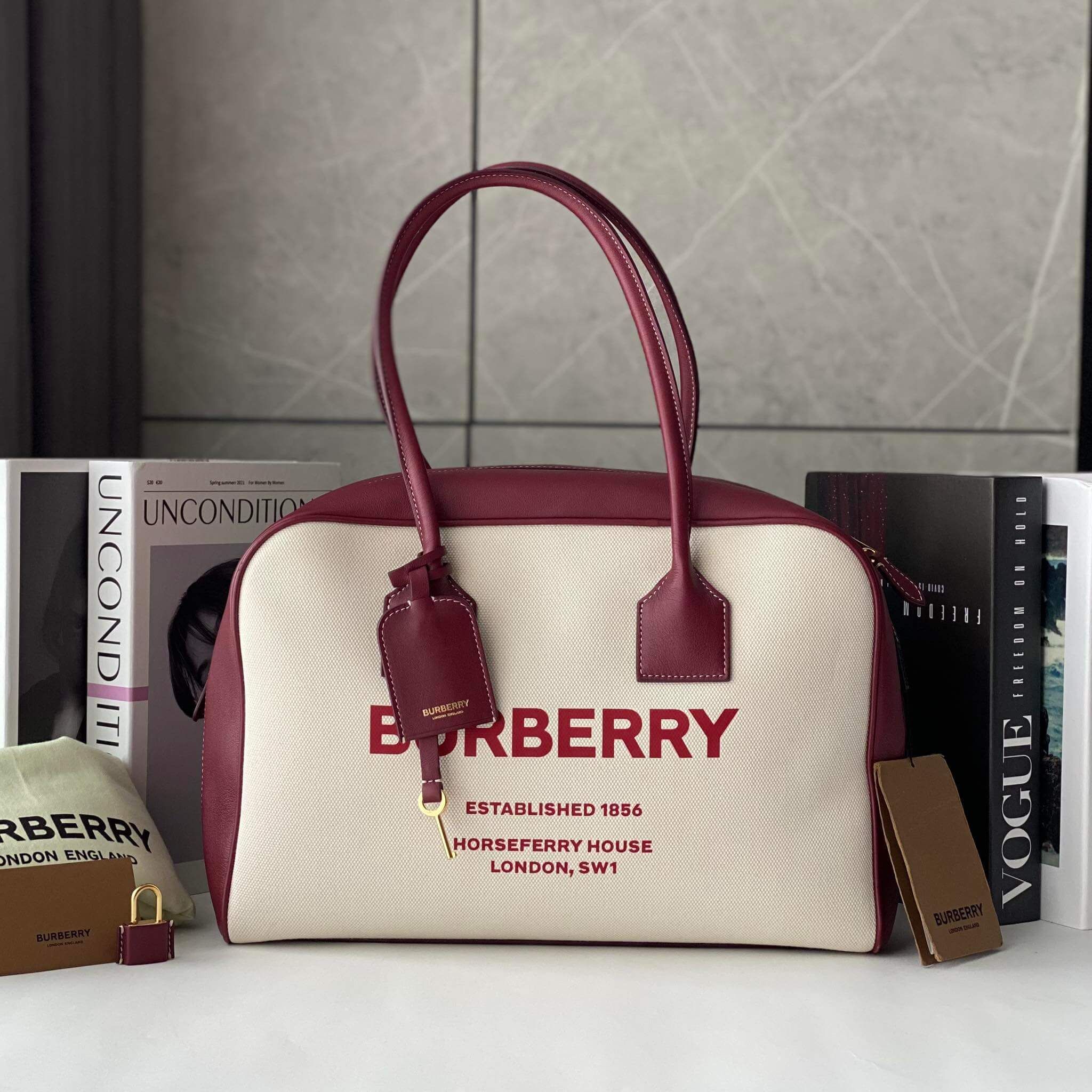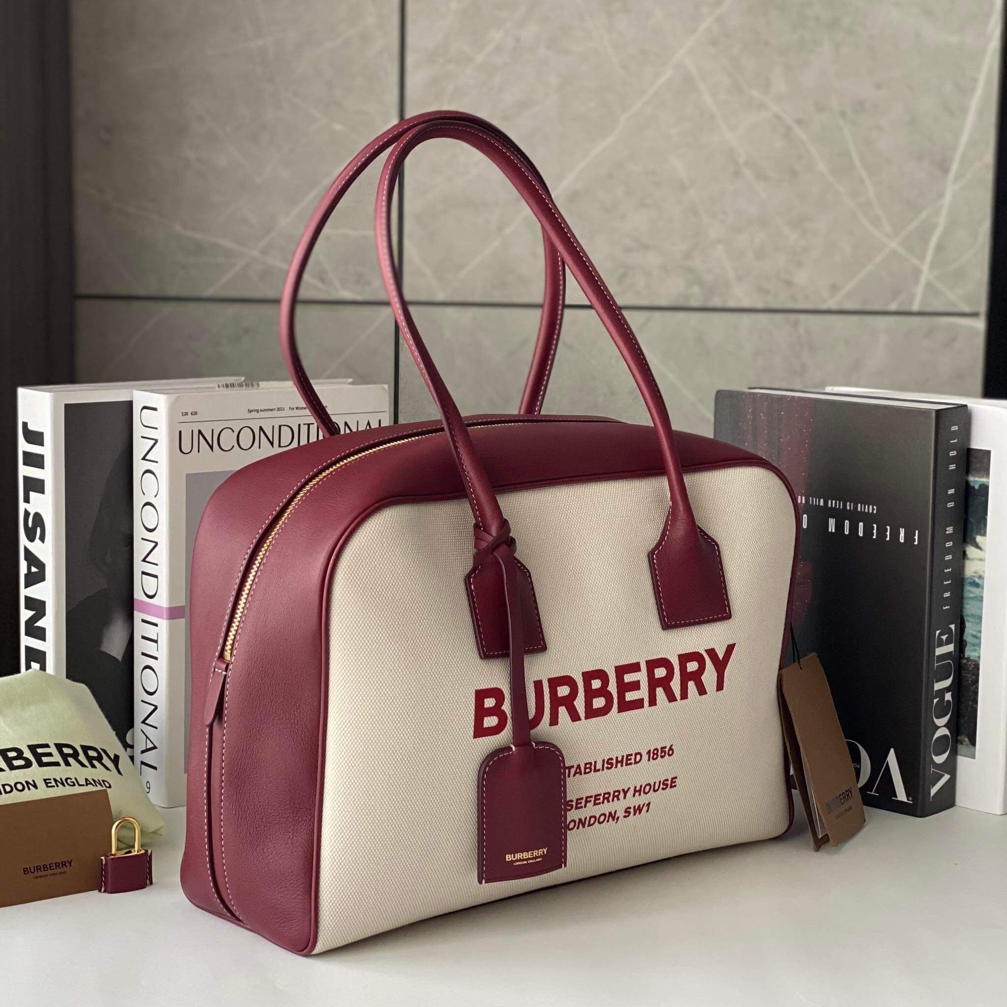 BBR Horseferry Print Cube Bag newss mùa qua với chất liểu vải phối da chữ đỏ cùng tone da đặc trưng siu đẹp luôn. Em chỉ có duy nhất 1c thui nha