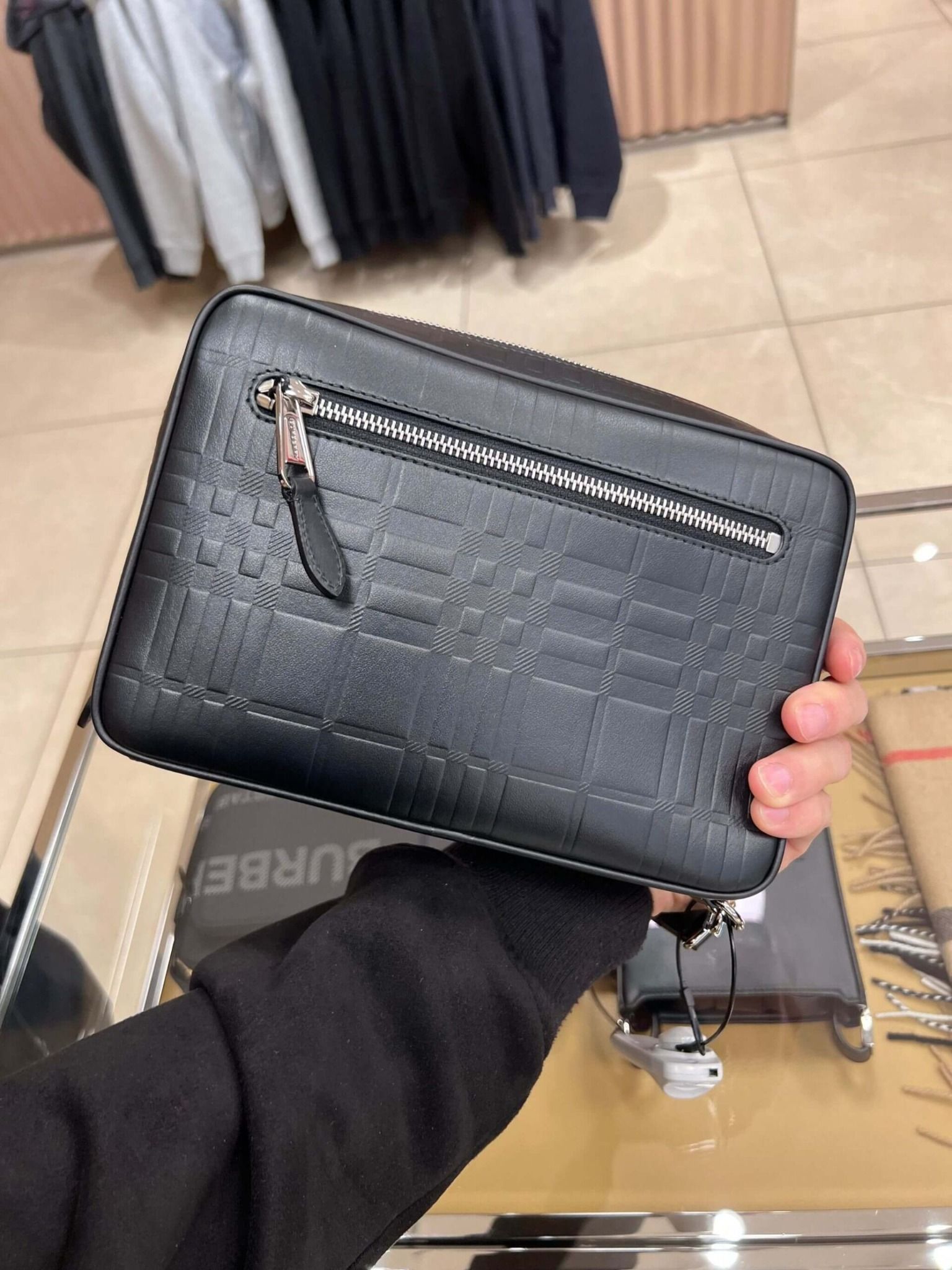 Đáp chiếc clutch nức lòng anh em luôn, chỉ có da là da xịn xò, họa tiết check chìm nổi cực sang. Xách tay em này thì k sợ phô trương mà vẫn rất chất. Giá em về extra seo nên rẻ ngang od nhé ạ