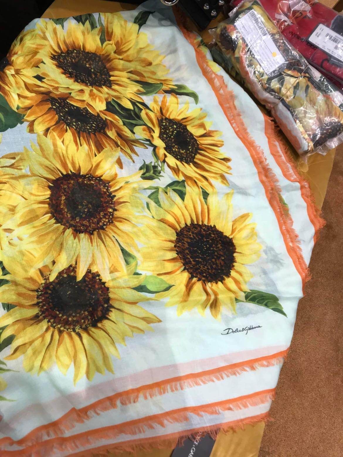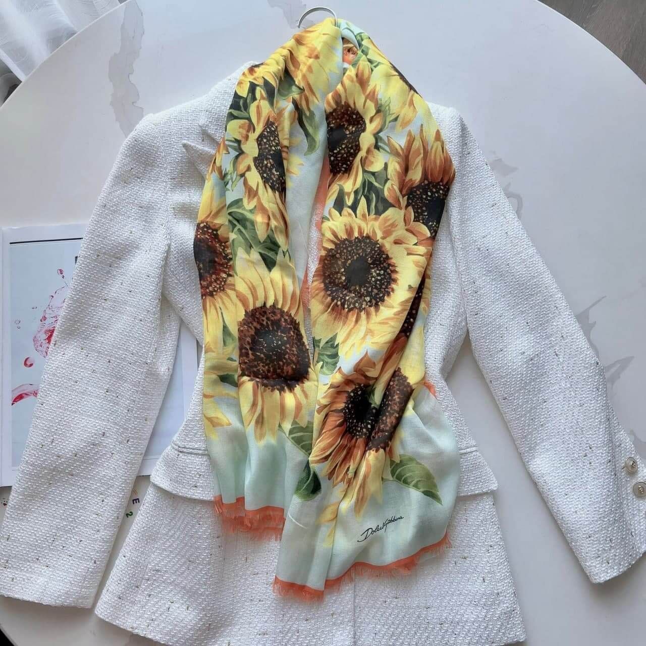 Đẹp quá, em về khăn hướng dương DG đặc trưng hãng xinh lắm luôn