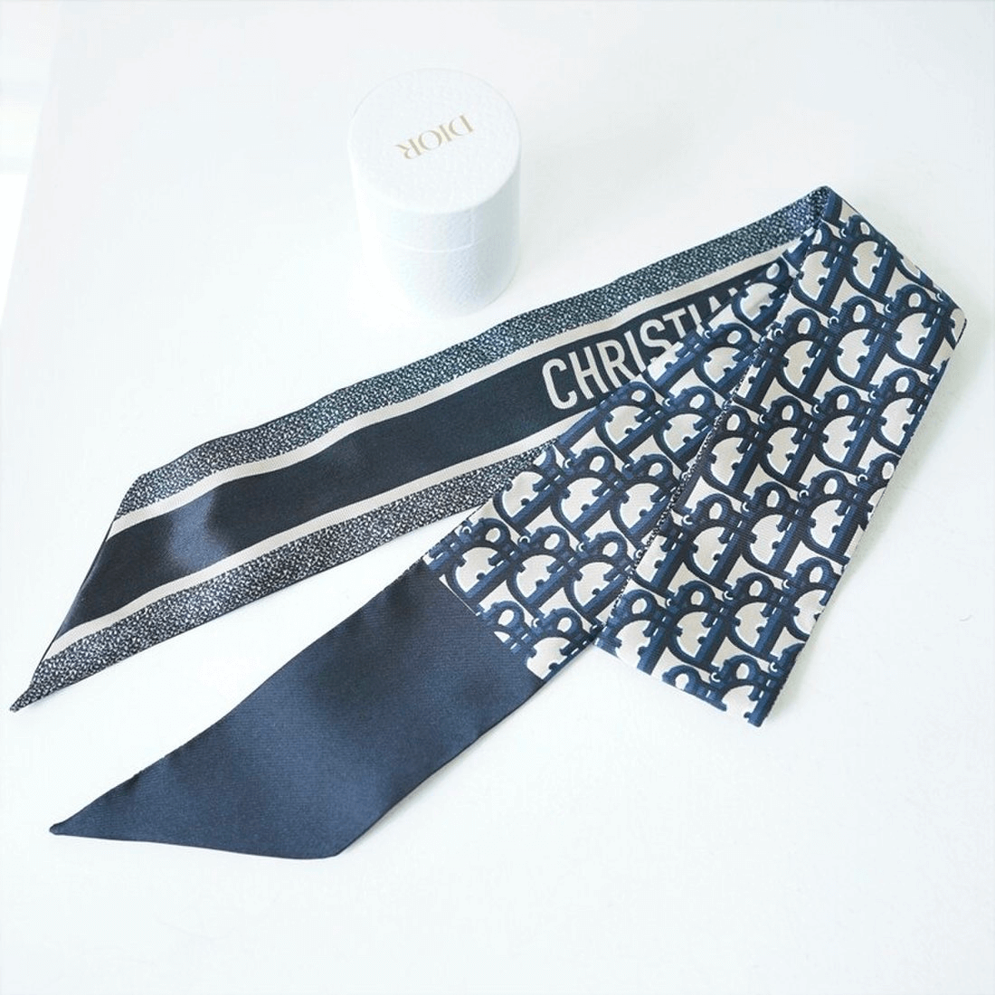 DlOR twilly 2 mặt màu navy siêu kinh điển – thắt túi, quàng cổ đều xuất sắc