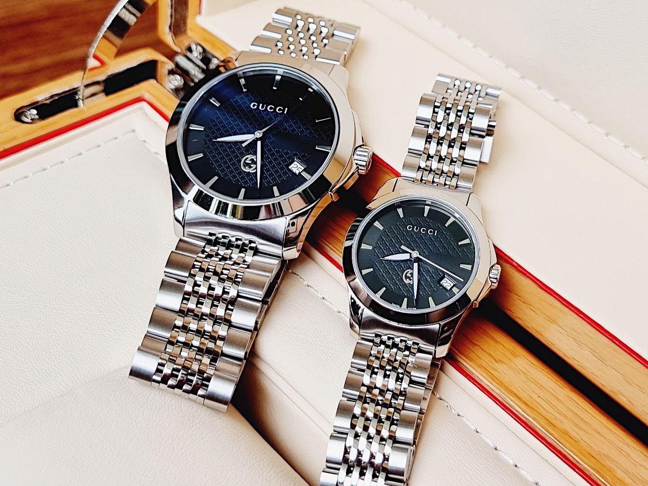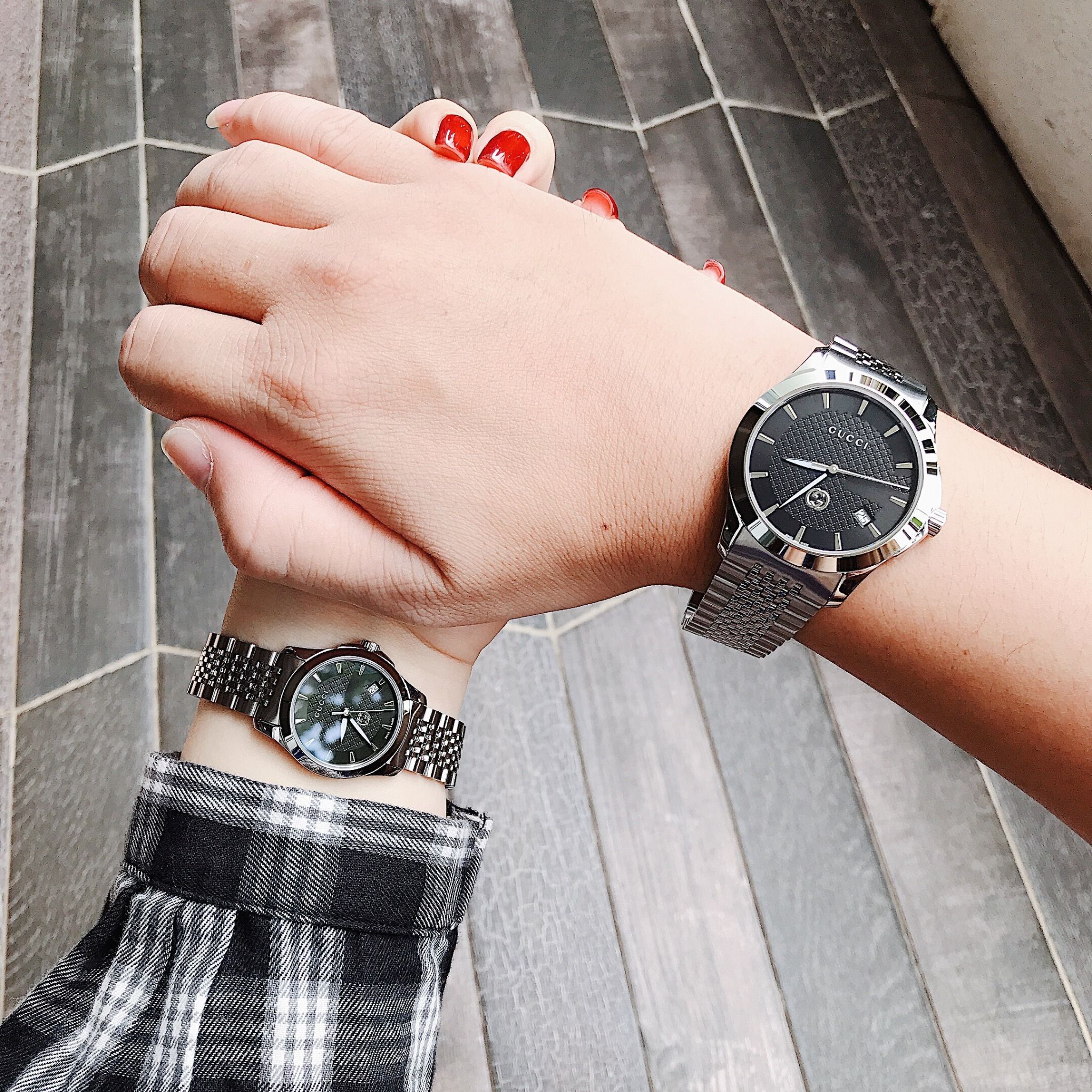 Couple siêu xịn sò, đẹp ngất ngây từ nhà Gucci Gucci G-Timeless Brown dial Tone mặt xám cực tây, sang trọng Nam case 38mm, Nữ 28mm