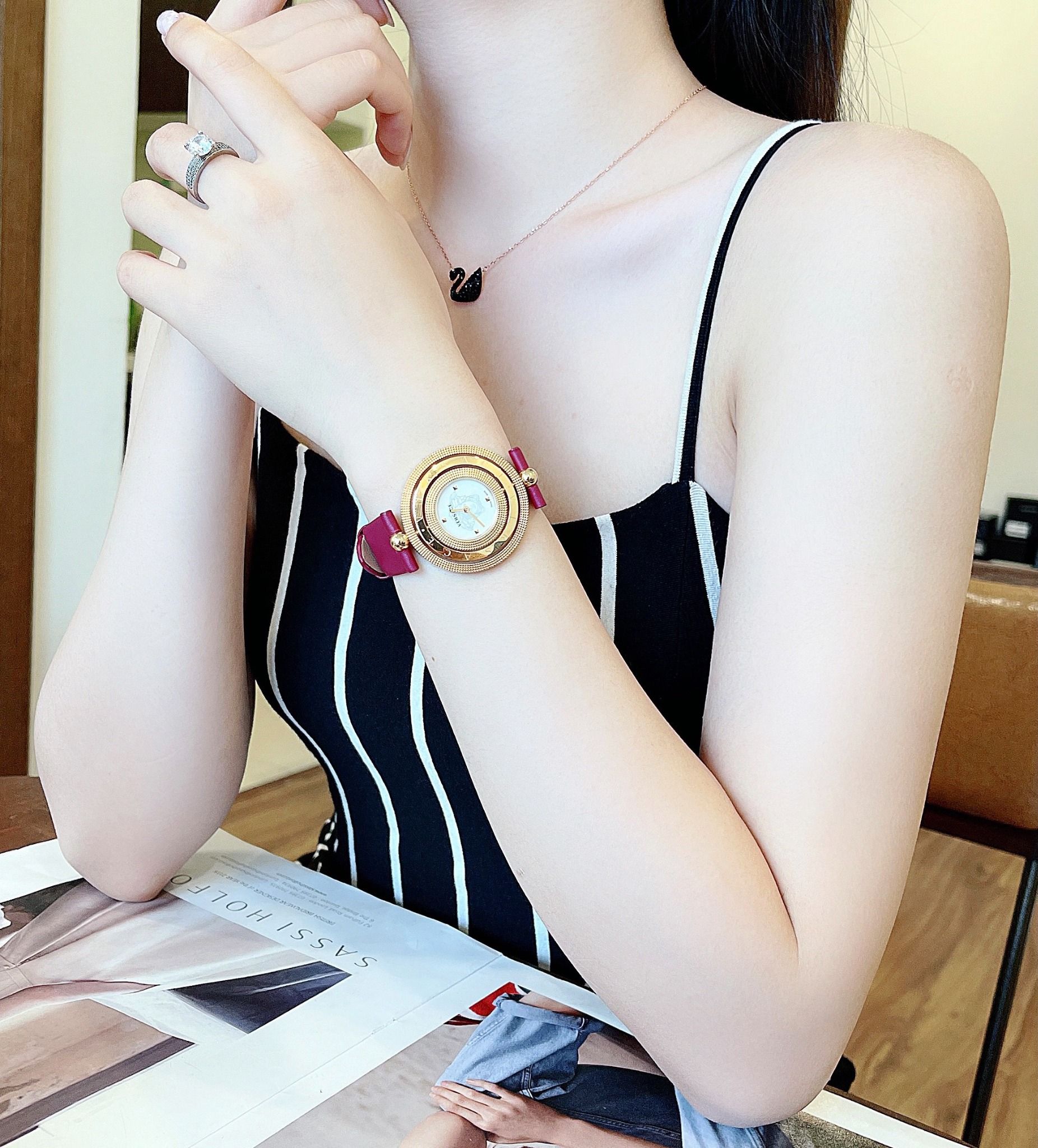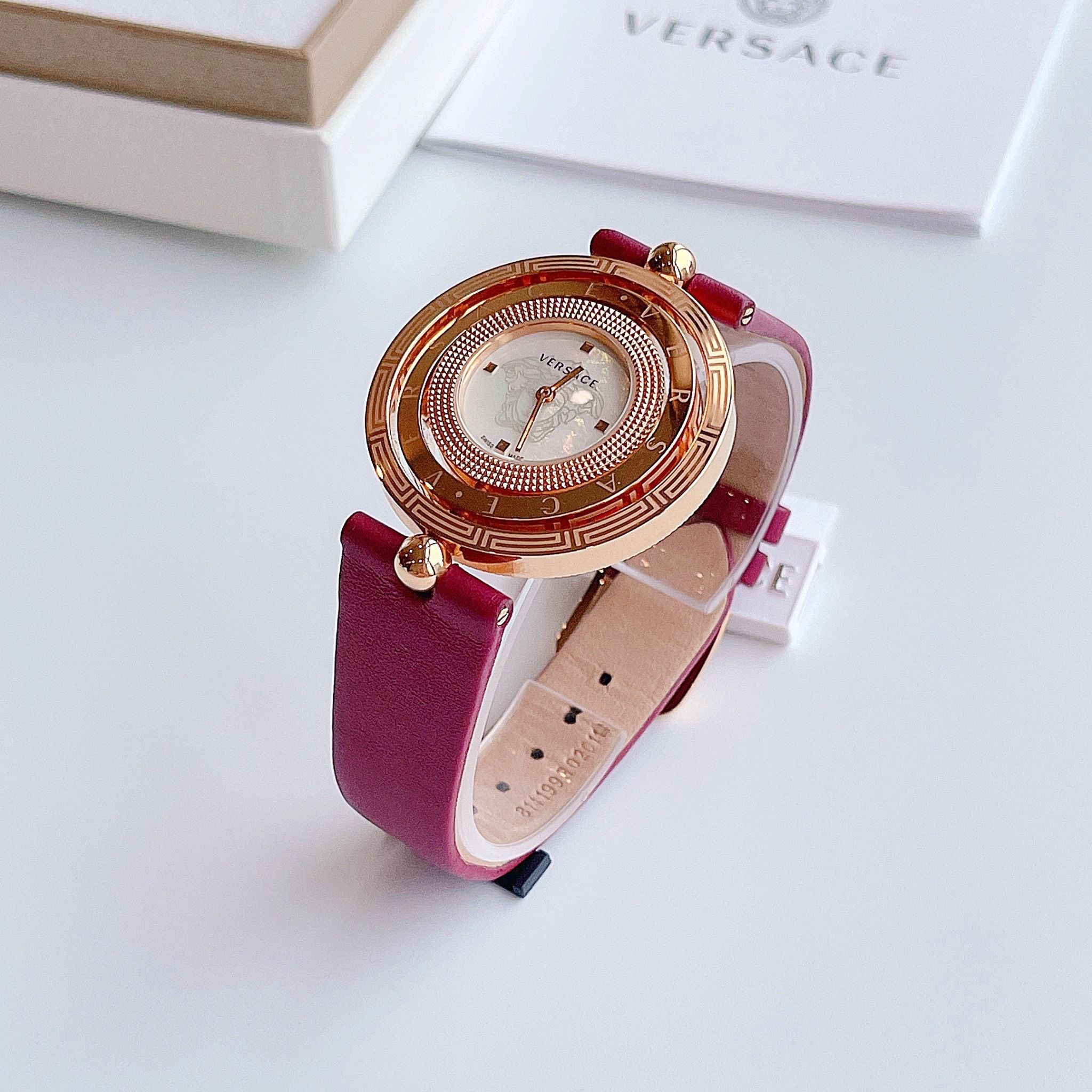 Siêu đẹp, siêu hiếm. Thiết kế kinh điển vô cùng xuất sắc từ nhà VS Ver-sace Eon women Watch Case 39mm, kính sapphire Mặt xoay 360 độ 3 vòng cực ấn tượng của dòng Eon, dial khảm trai sang trọng