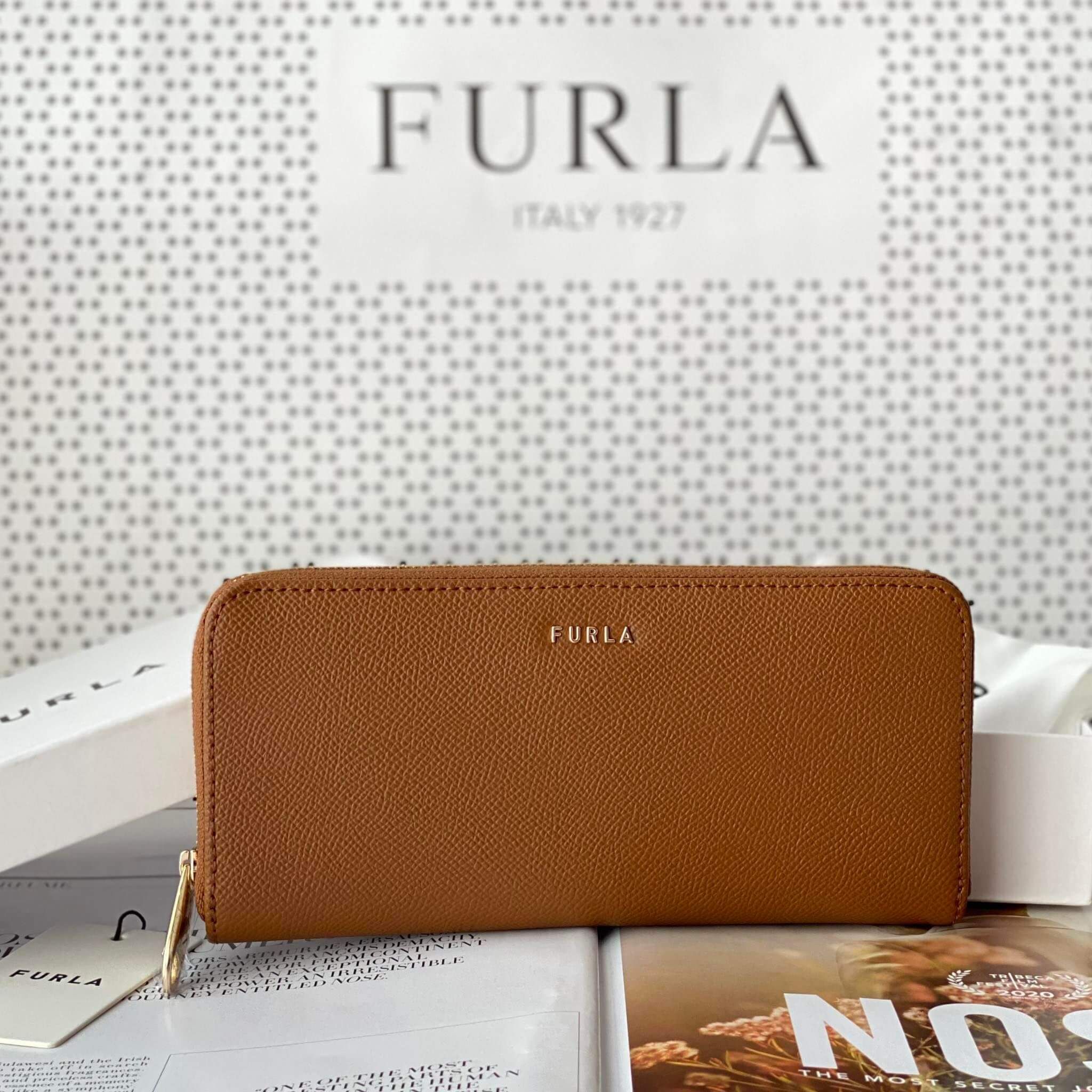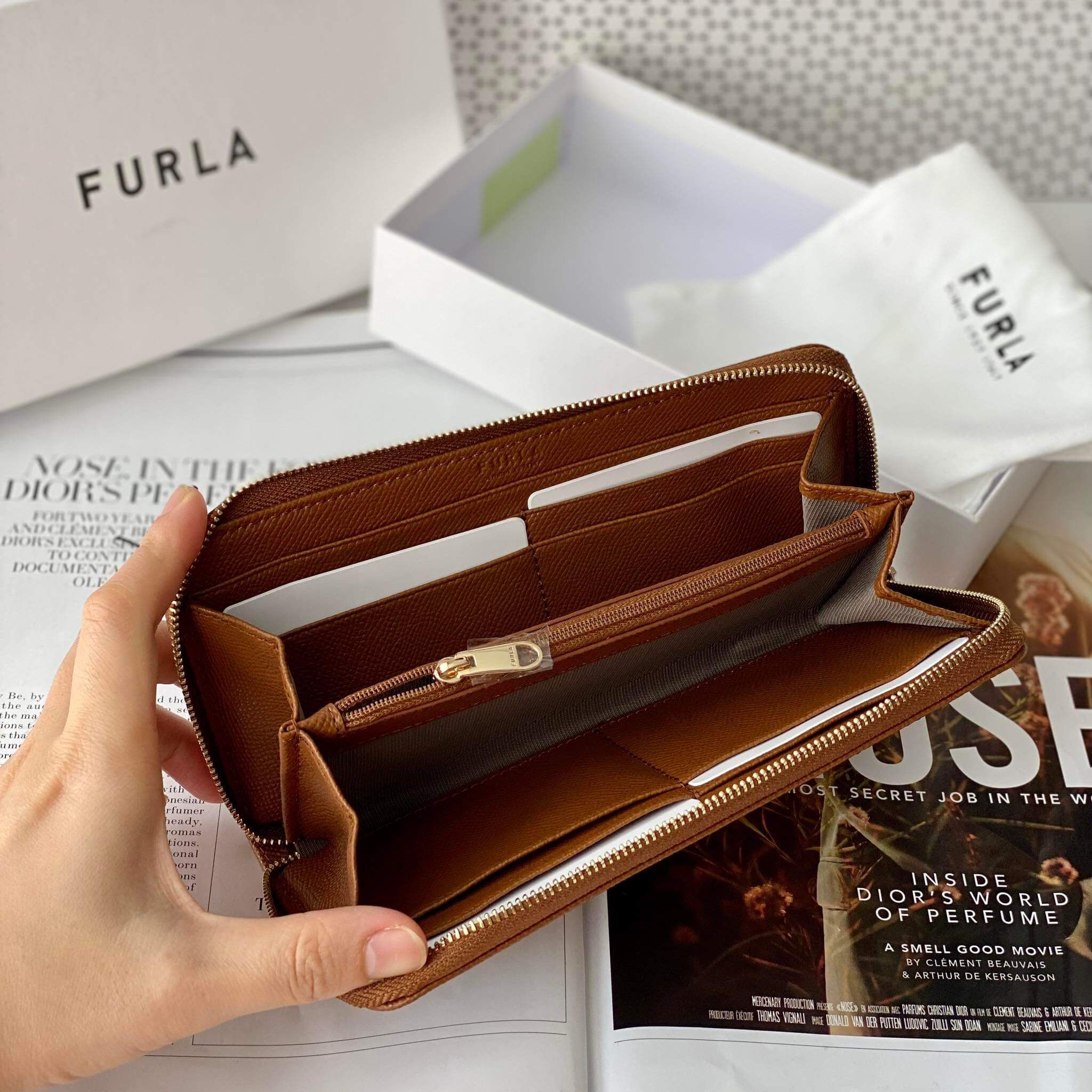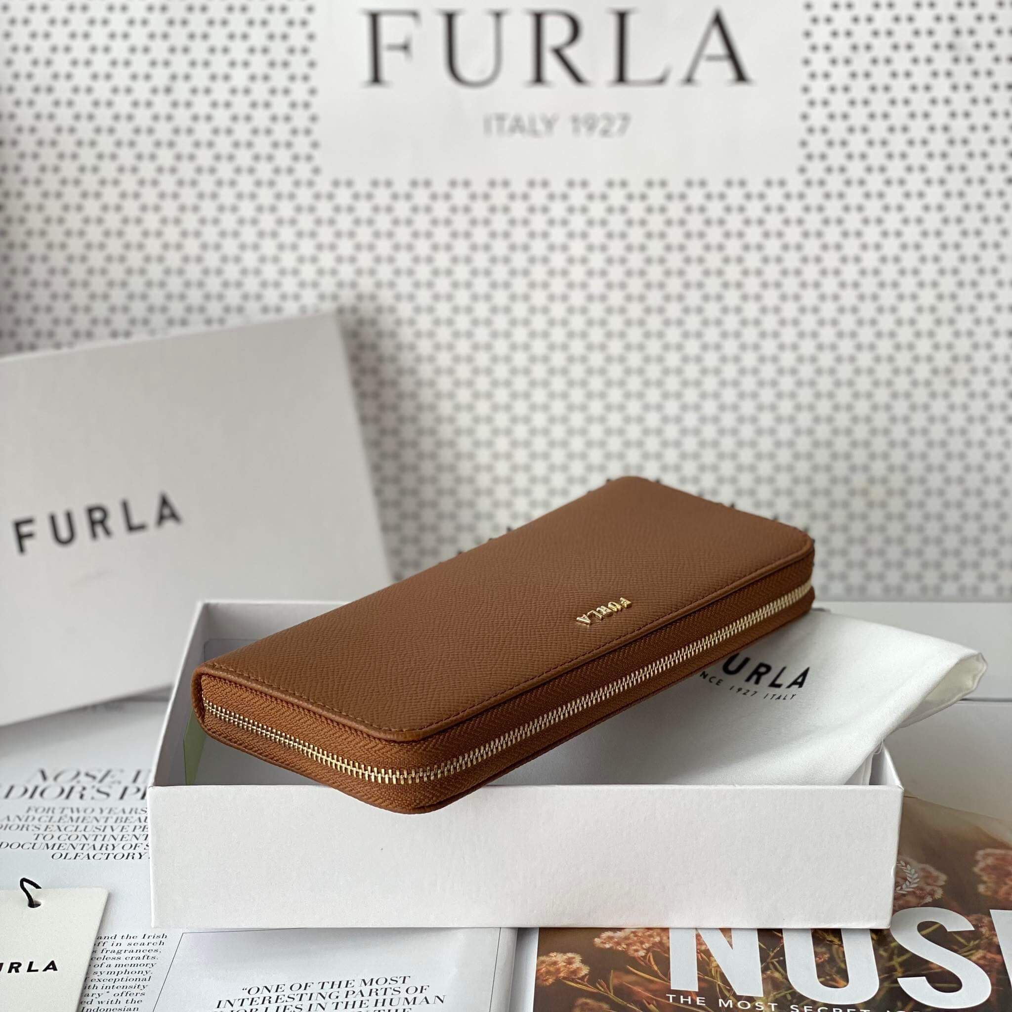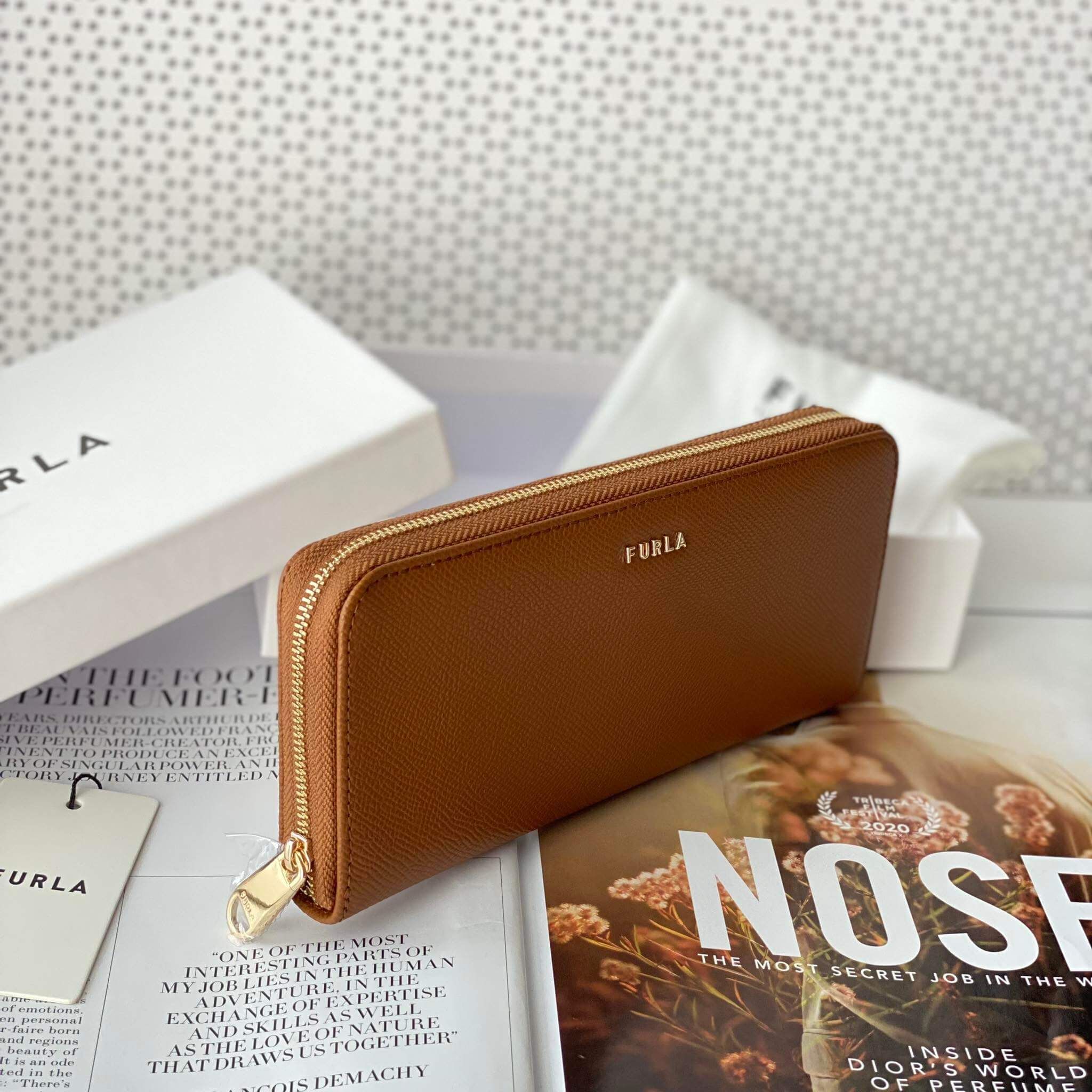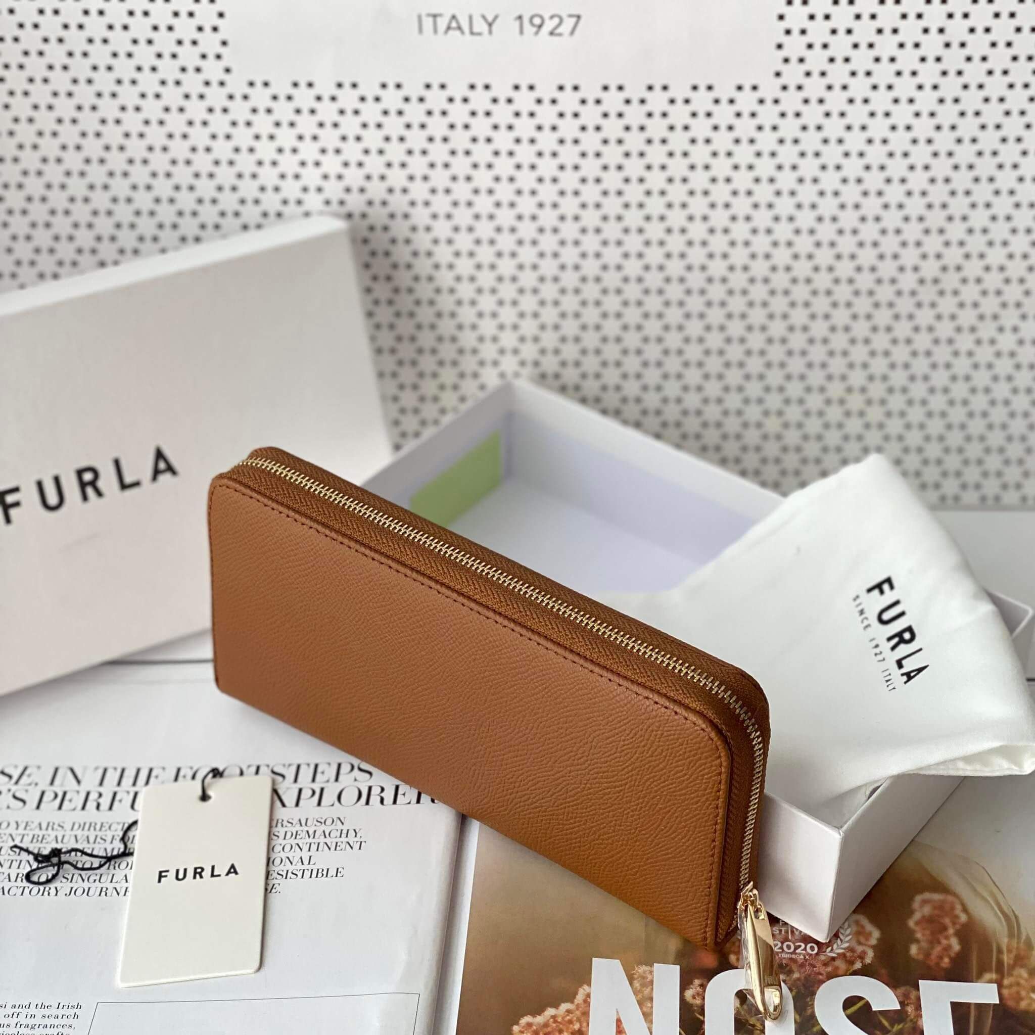 Đẹp xuất sắc ví zip FurIa màu nâu cognac da saffiano cao cấp – chất da đẹp nhất của hãng
