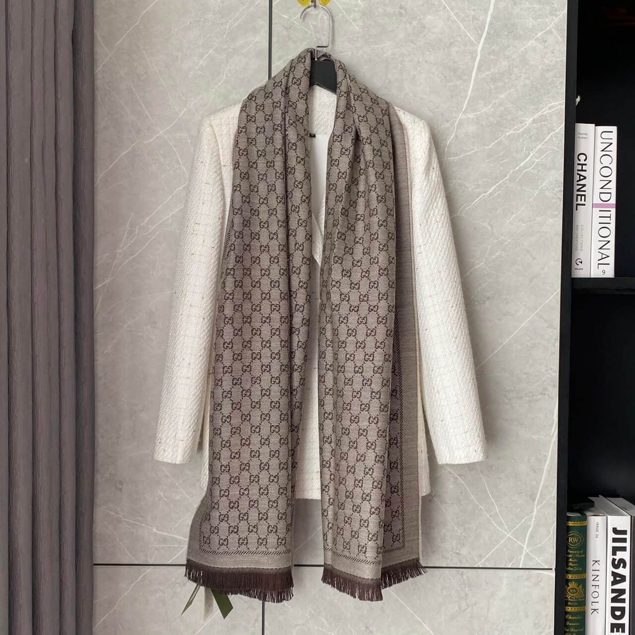 Khăn GC logo GG 2 mặt tone màu nâu unisex đẹp và rẻ lun ah