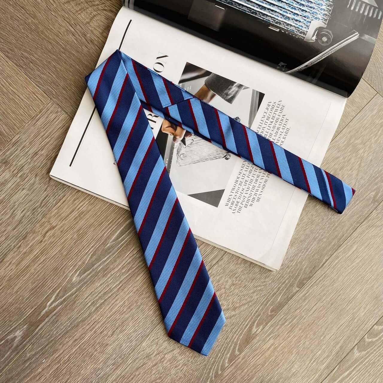 Cà vạt GC navy họa tiết xanh sọc blue đỏ nam tính