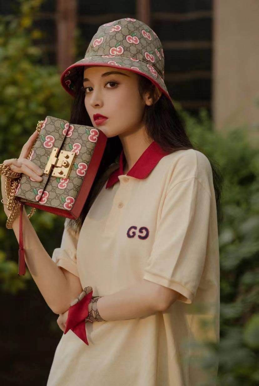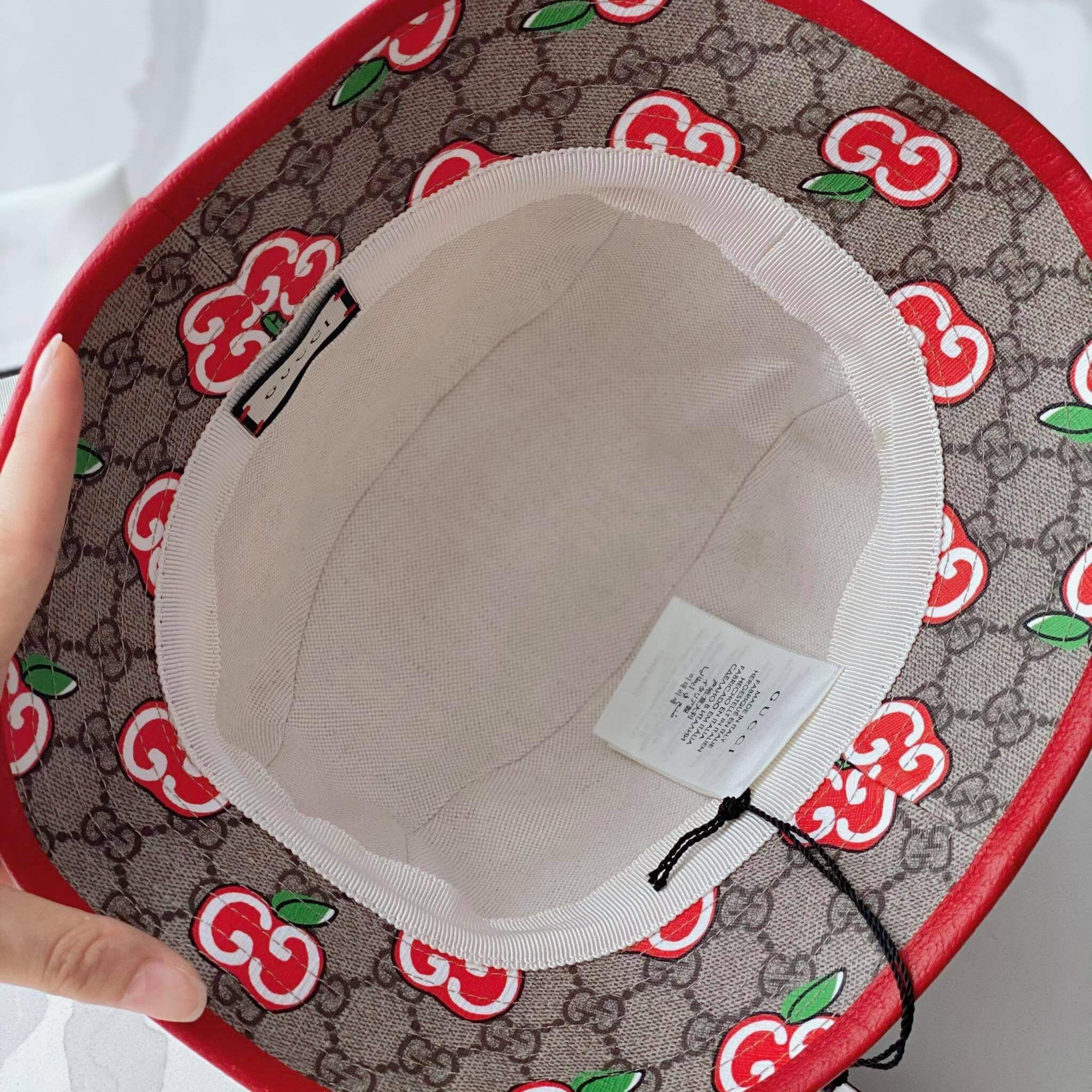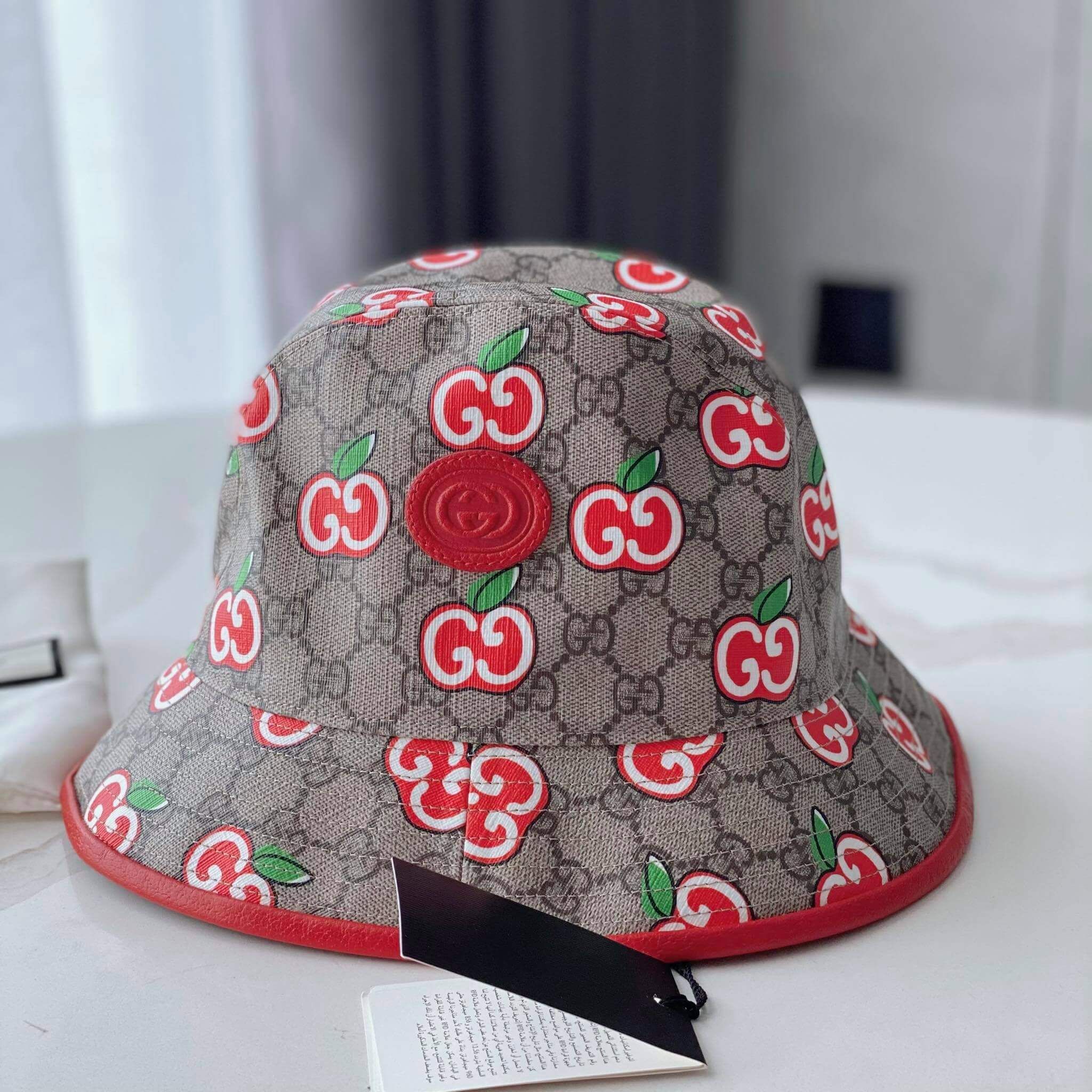 Mũ GC táo với họa tiết GG màu be mix với viền da đỏ trẻ nhé các chế ơi