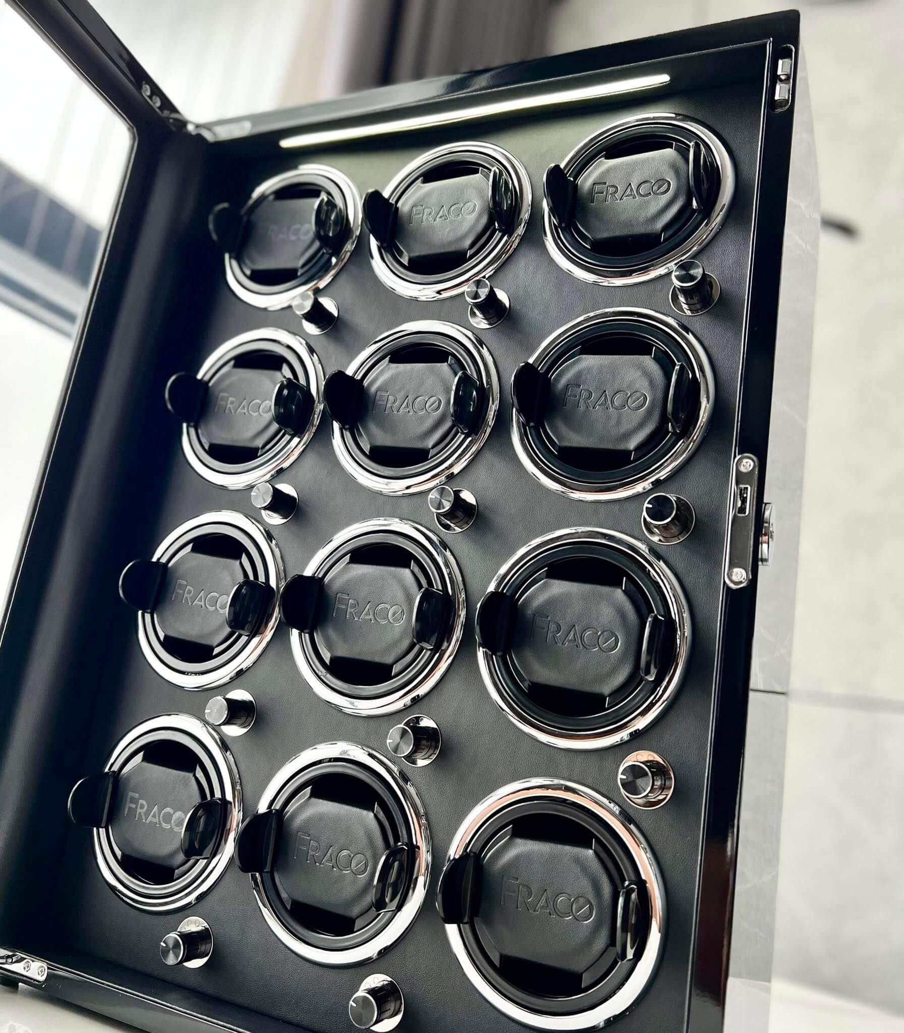 Hộp xoay đồng hồ cao cấp Fraco X1200, sức chứa 12 ổ xoay, sử dụng máy Mabuchi Nhật Bản êm ái