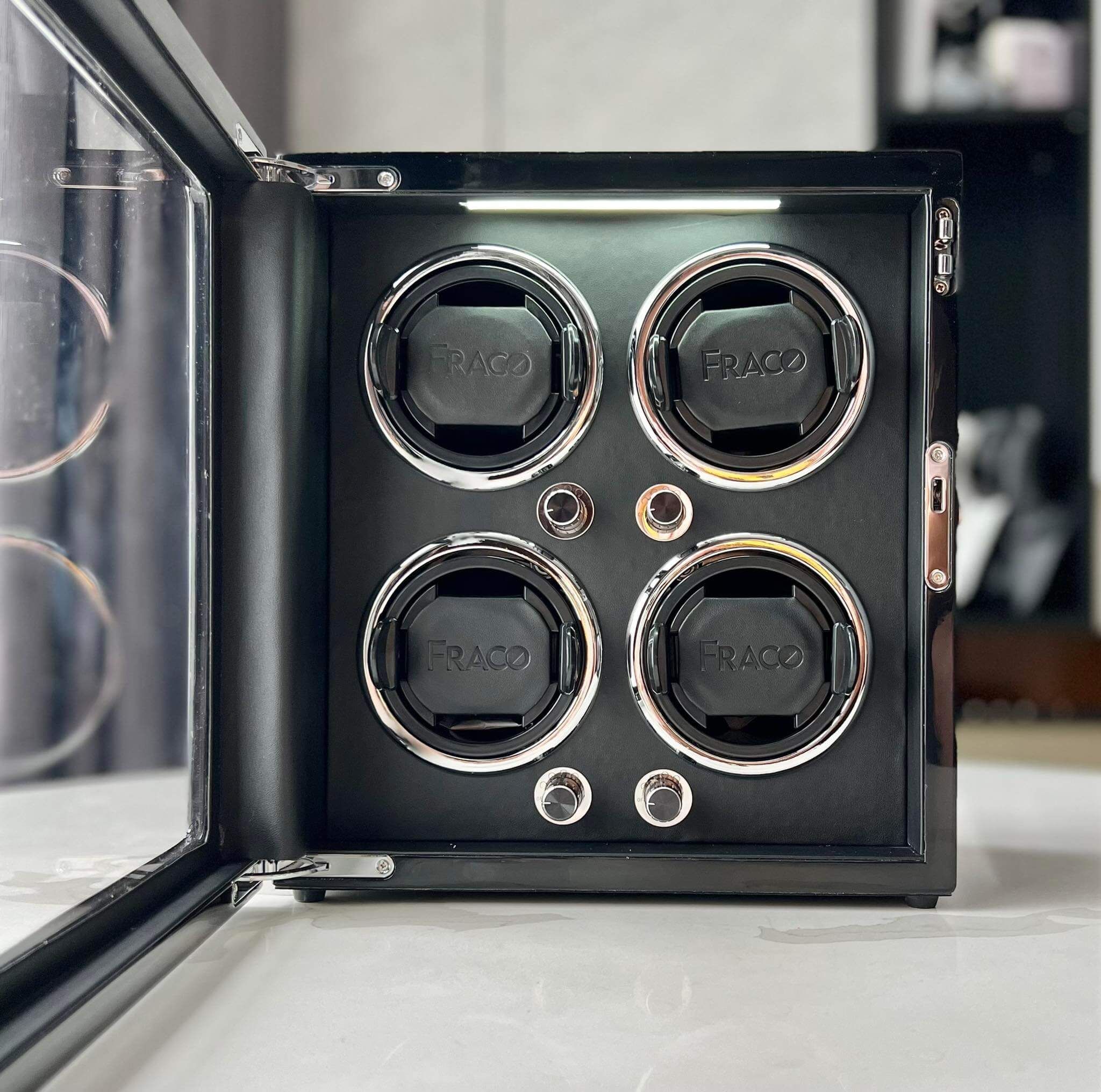 Hộp xoay đồng hồ cao cấp Fraco X400, sức chứa 04 ổ xoay, sử dụng máy Mabuchi Nhật Bản êm ái