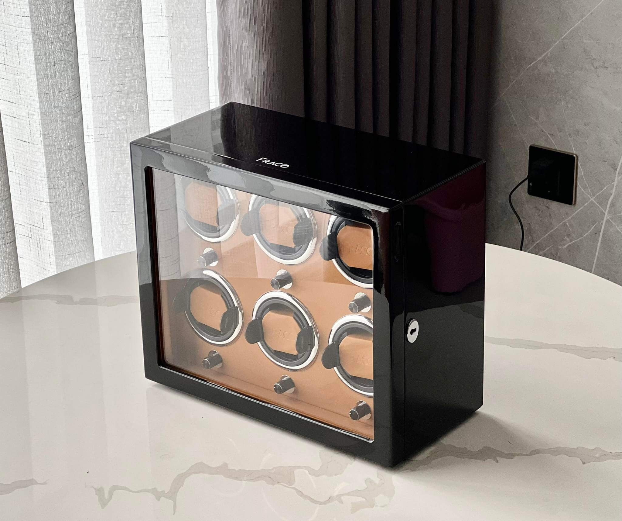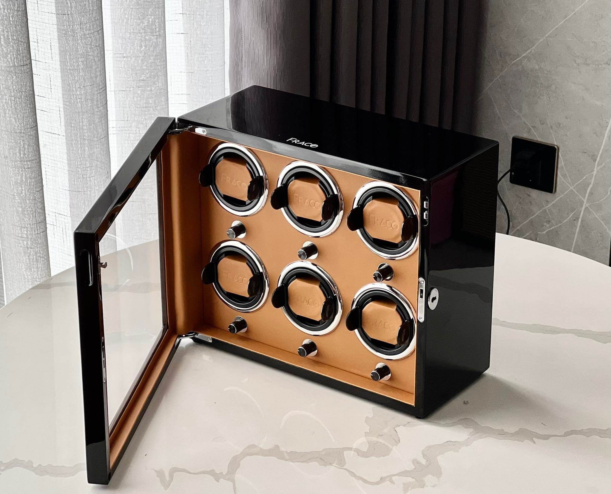 Hộp xoay đồng hồ cao cấp Fraco X600, sức chứa 06 ổ xoay, sử dụng máy Mabuchi Nhật Bản êm ái