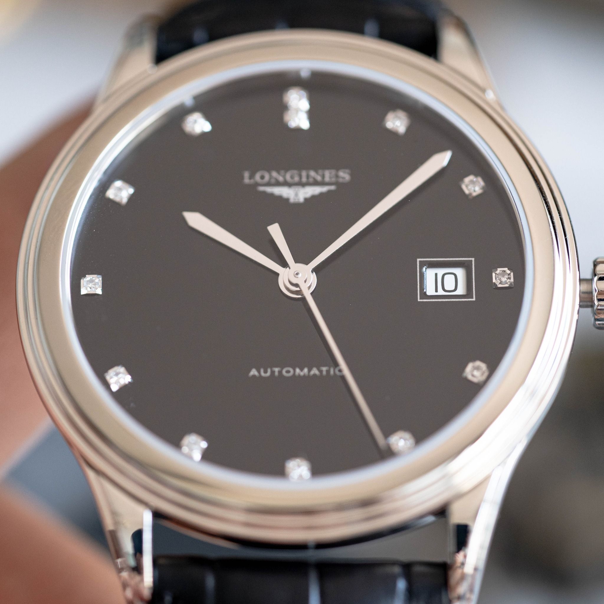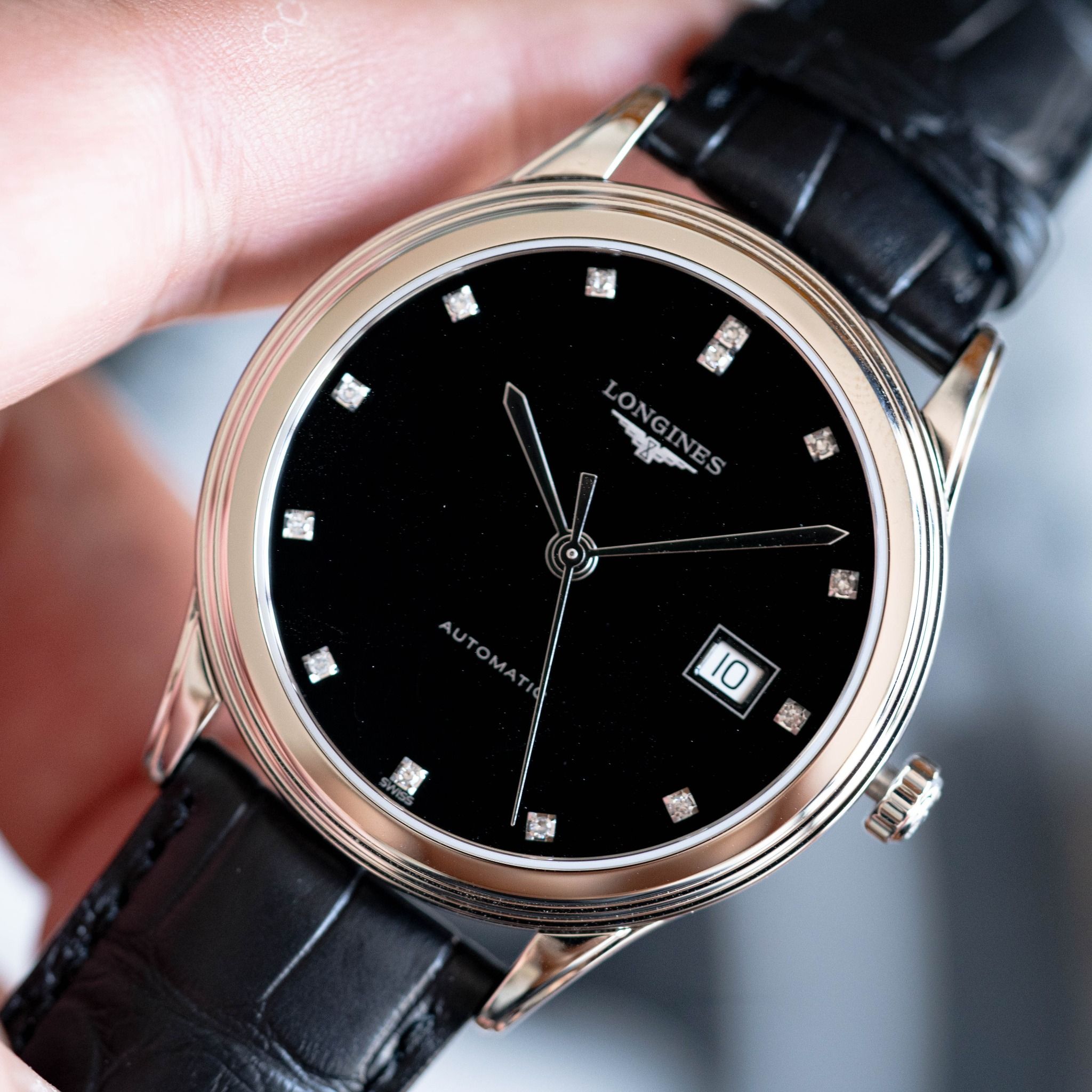 Một mẫu Dresswatch đến từ Longiness rất đẹp và sang trọngĐiểm nổi bật đến từ 13 viên kim cương đính cọc số cực kỳ sang trọng và đẳng cấp nổi bật trên nền dial đen huyền bí cuốn hút