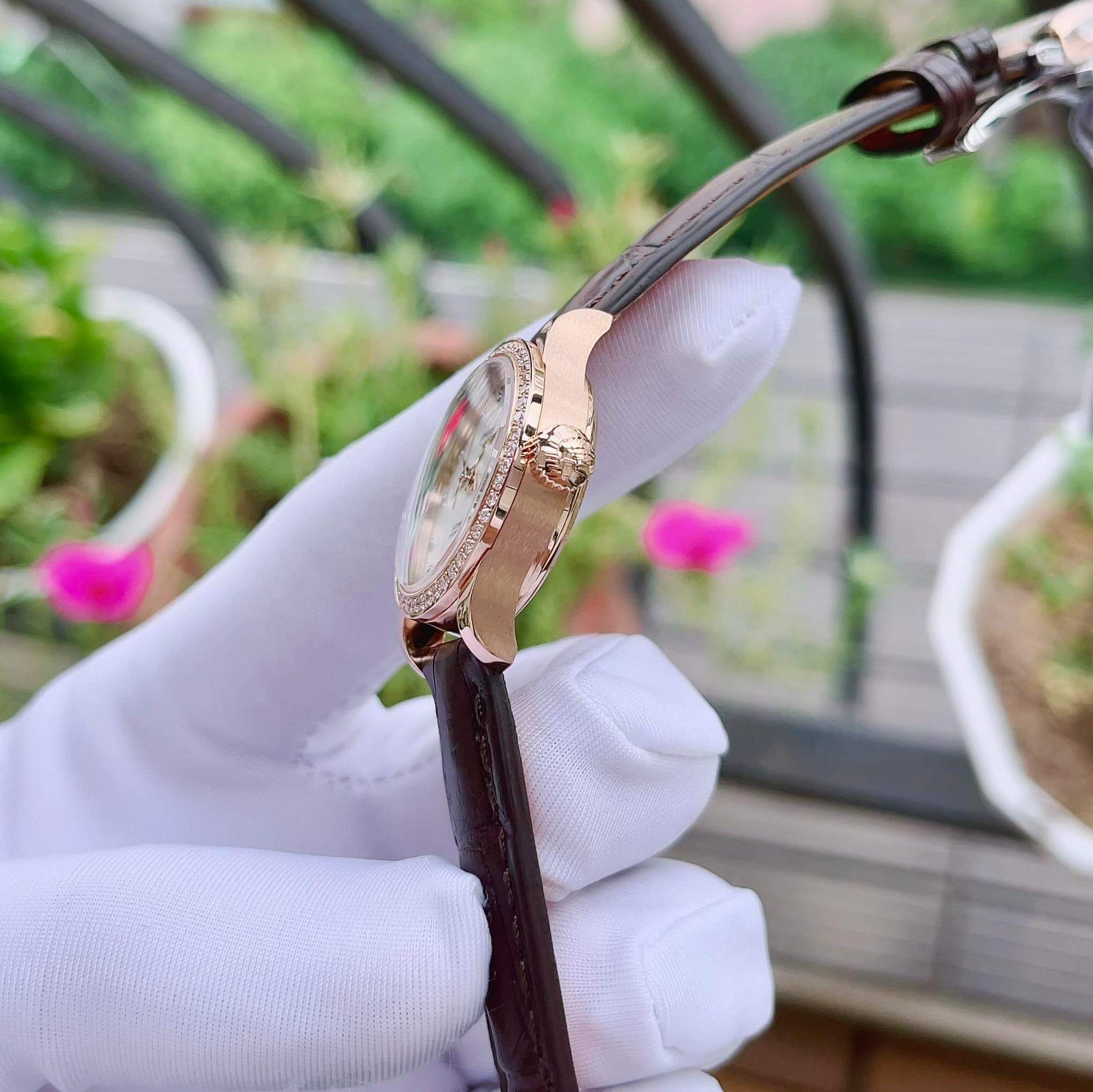 Size 26mm, dây da nâu + khóa chống gấp