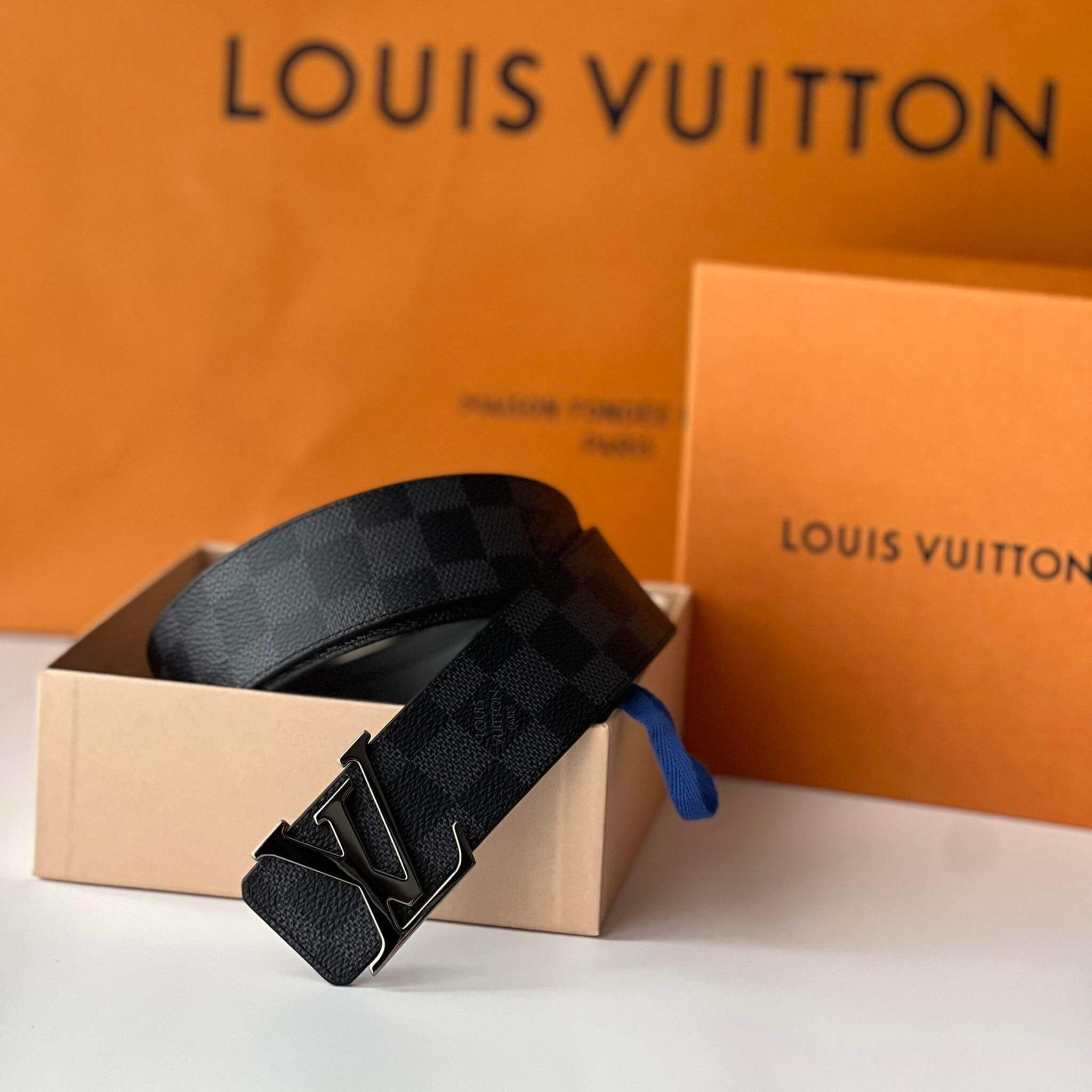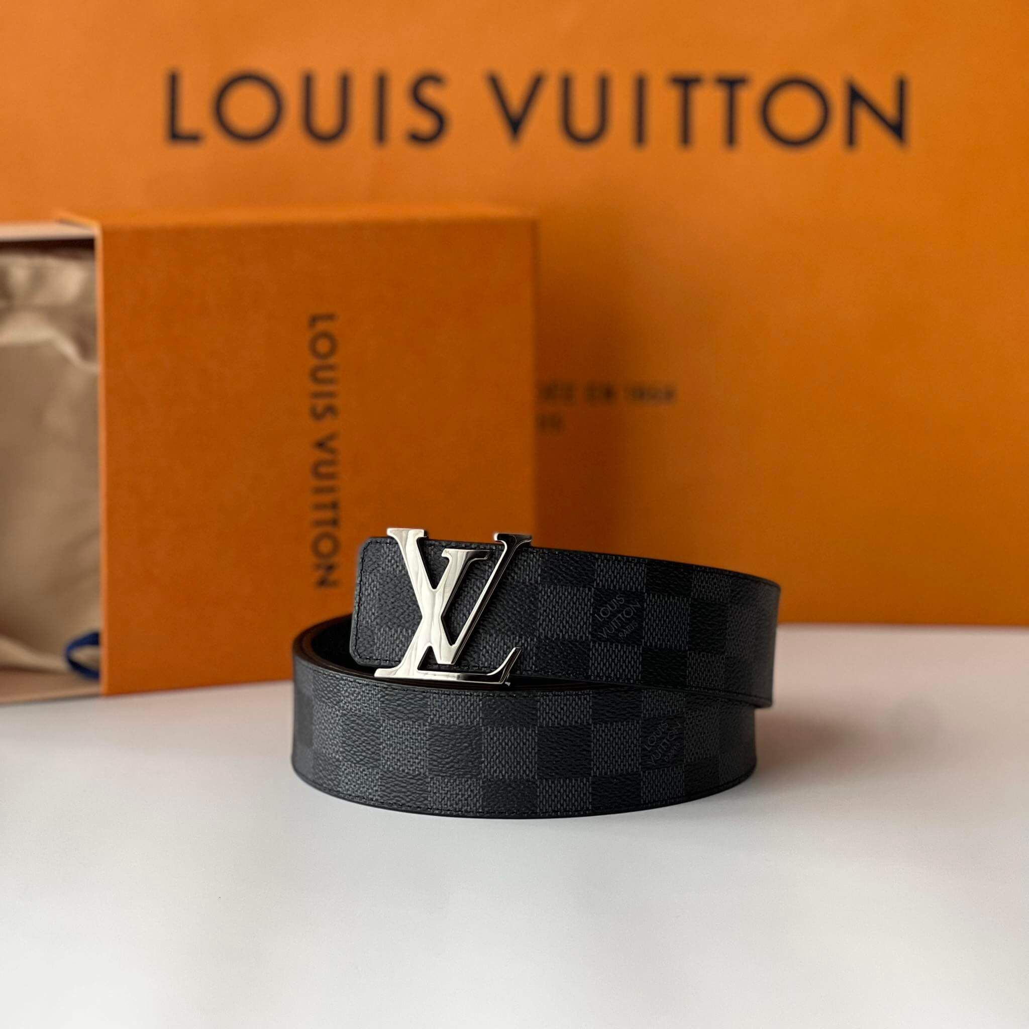 Belt LV nam Reversible 2 mặt dây thay đổi: Damier + Đen – logo LV đen nhám siu đẹp.