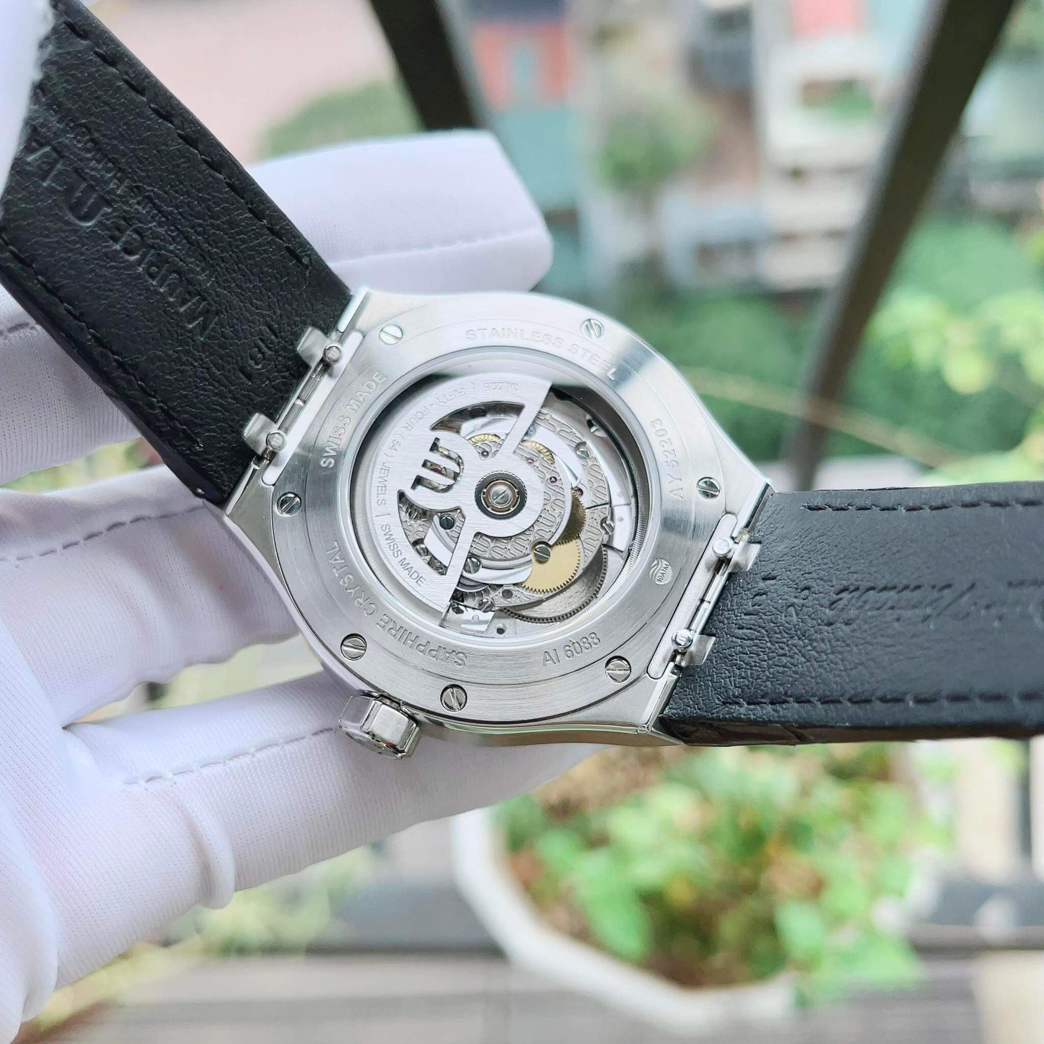 👉 Bộ truyền động ML225 (based SW-200 với cơ cấu Inhouse lắp đặt trên bộ máy) với 54 chân kính, 28800 vph & 38h tích cót. Bộ máy đc decor với vân thớ đầy đủ & khá đẹp.