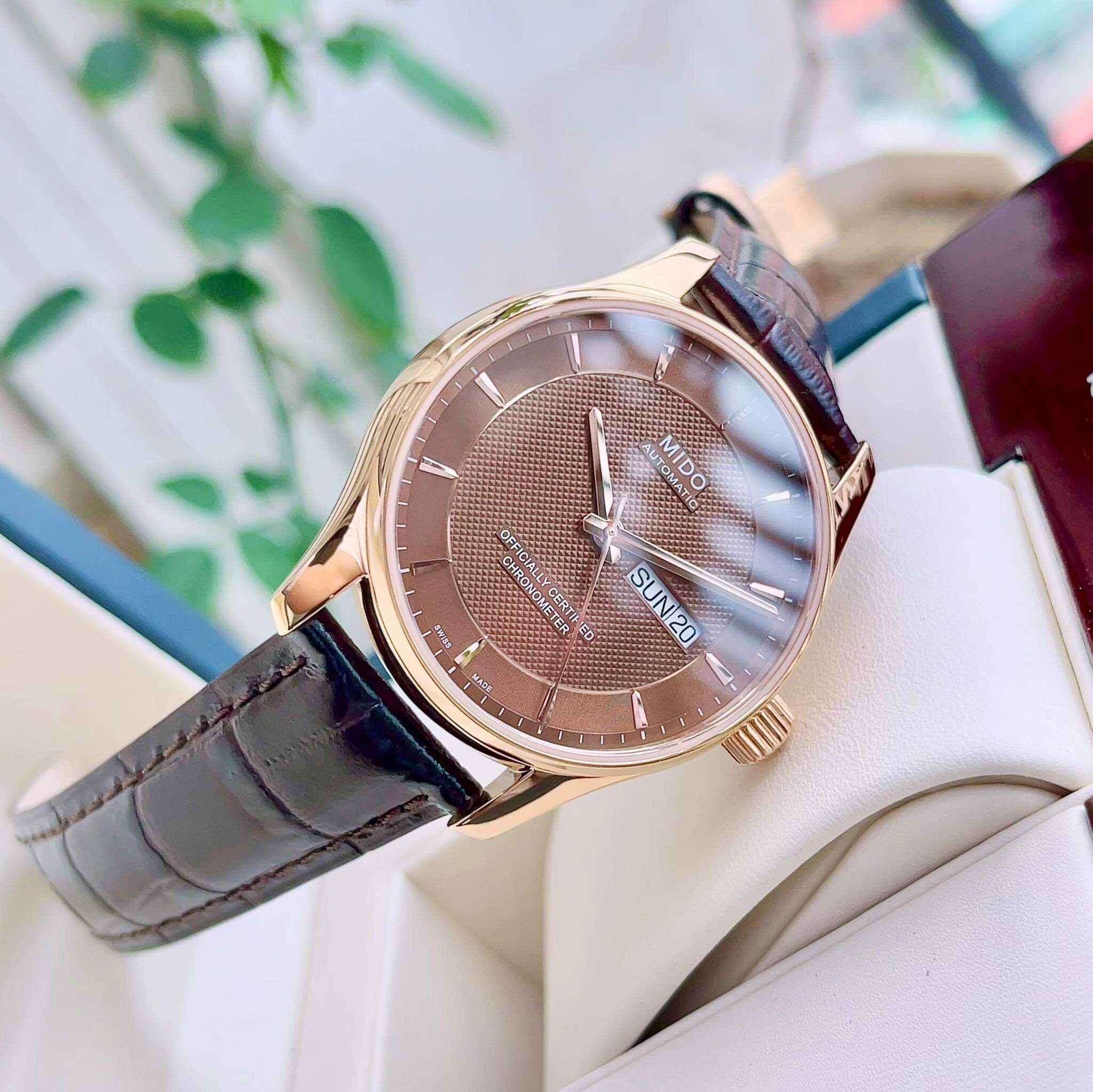 Mido Belluna Chronometer dresswatch màu café tuyệt đẹp