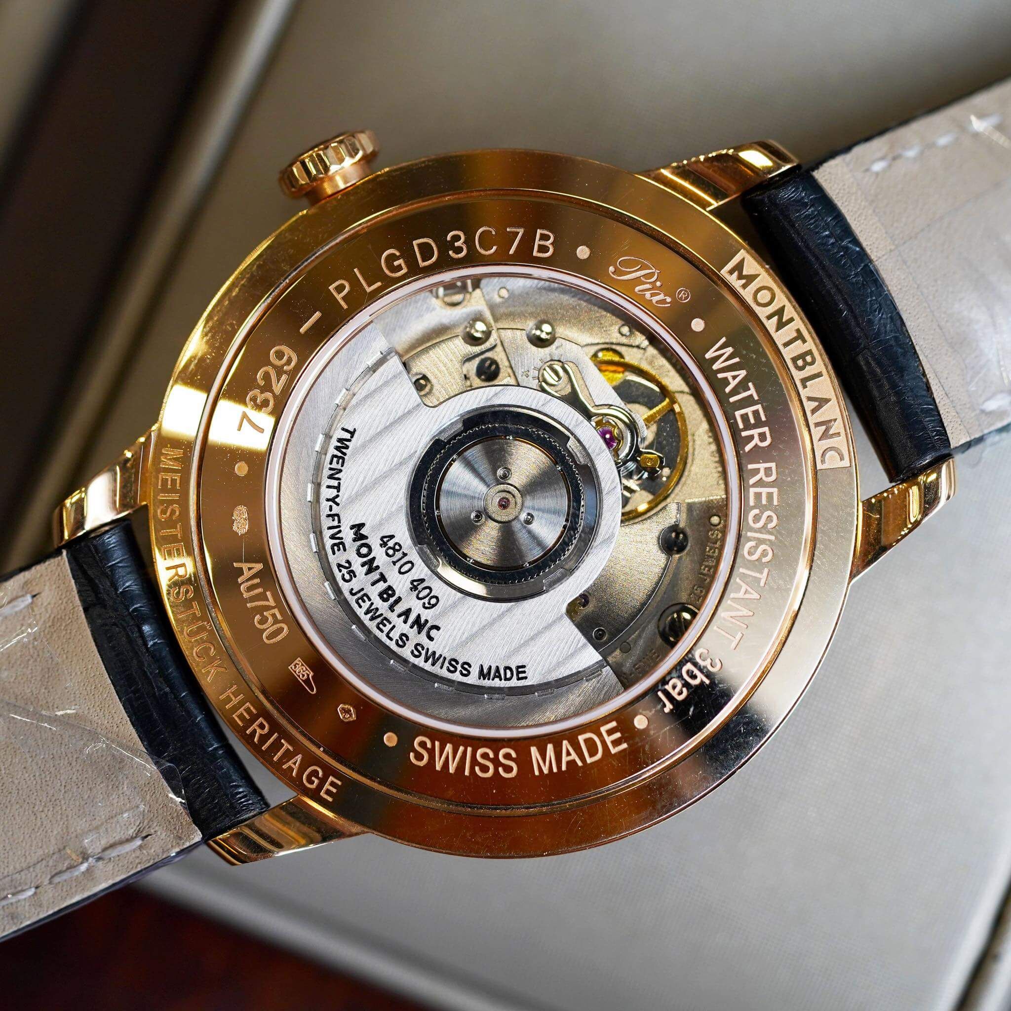 - Toàn bộ thân vỏ và khóa làm bằng vàng đúc 18k màu Red gold – có triện chứng nhận ở sau vỏ và sau khóa