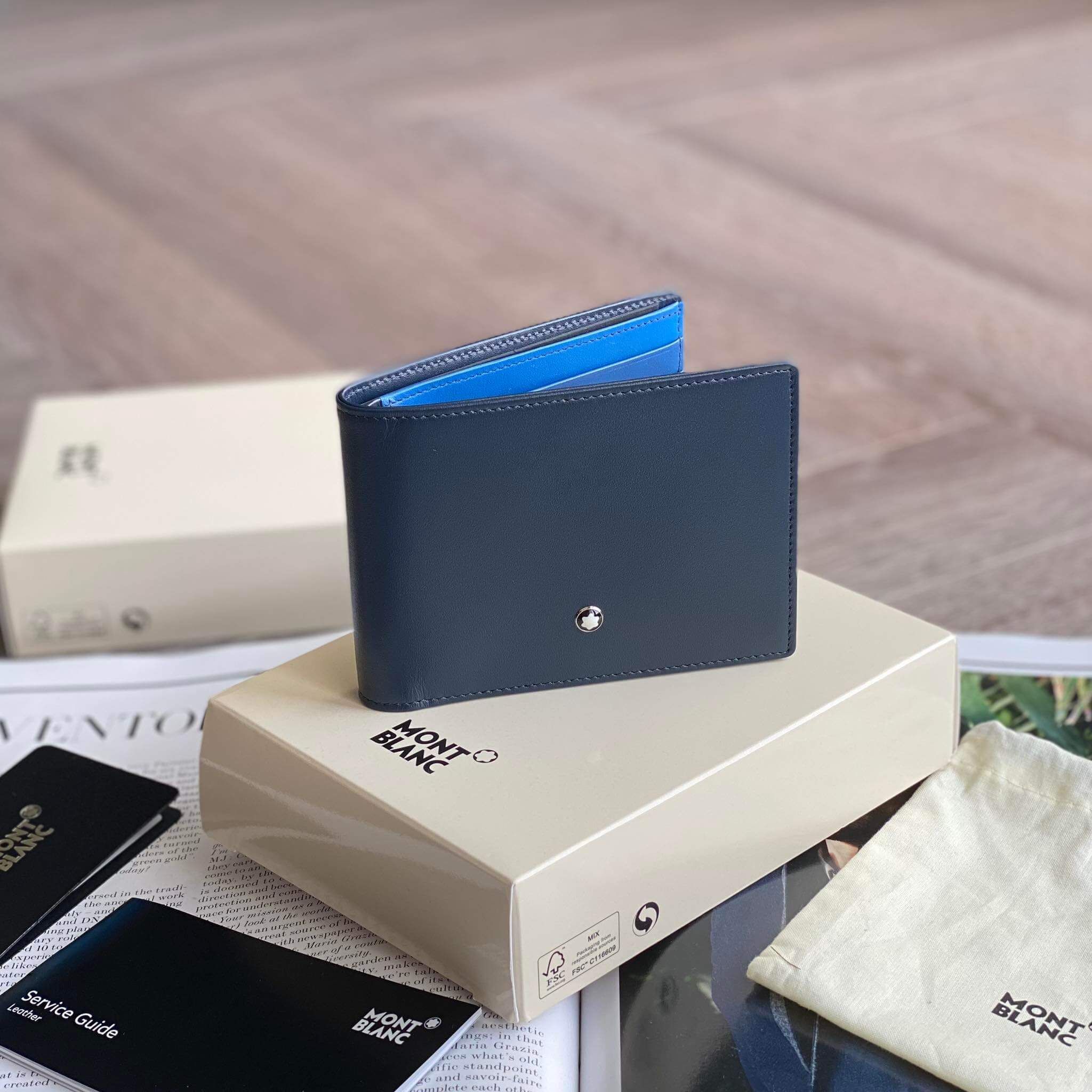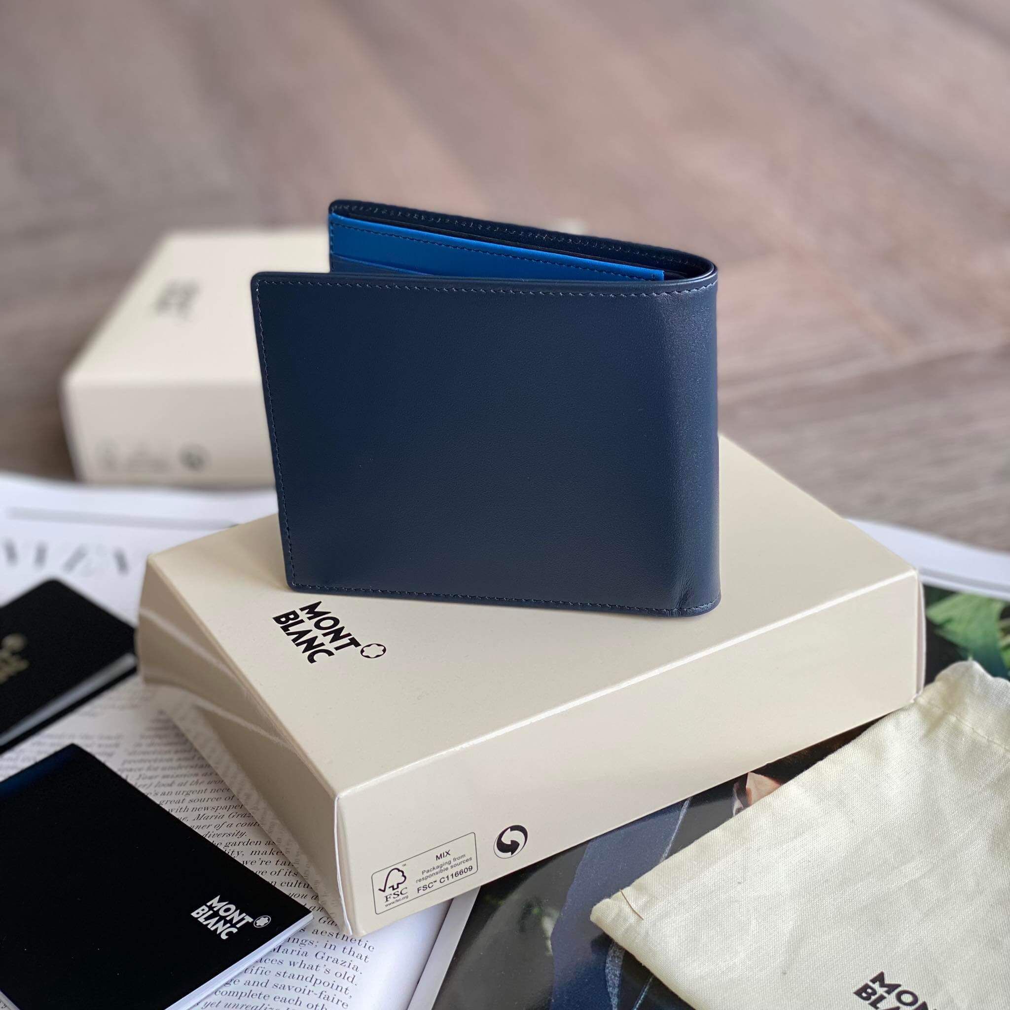 Thêm 1 mẫu ví nam ngôi sao tuyết MontBIanc nam tính với màu navy, lót lòng xanh coban siêu lịch lãm