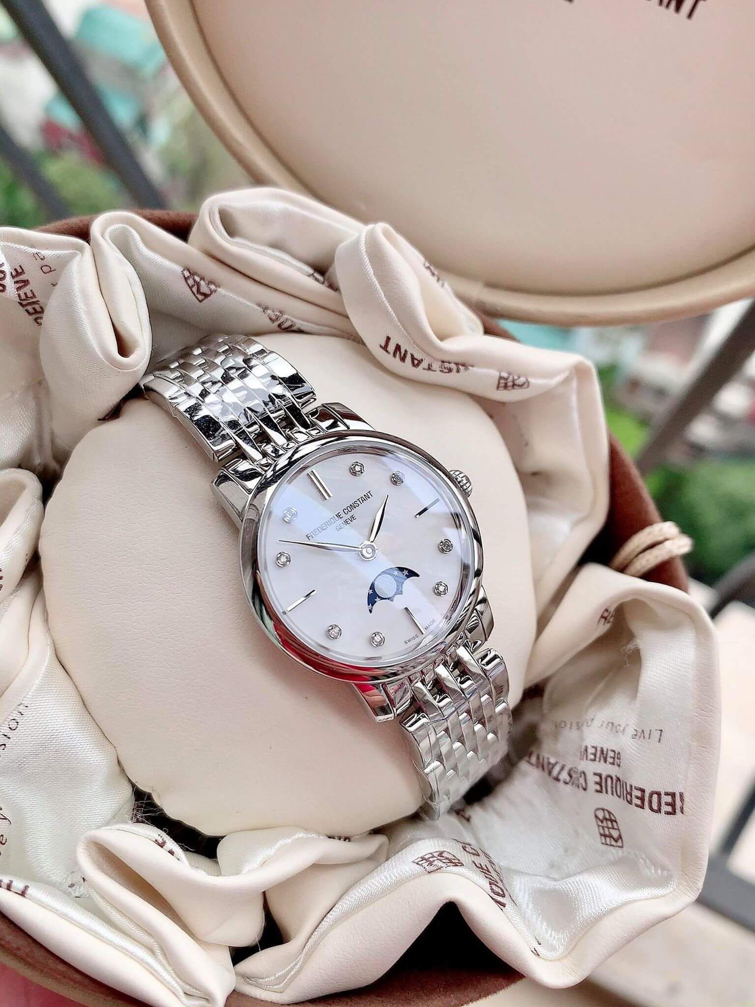- Cọc số đính kim cương sang trọng kèm thẻ chứng nhận của hãng Thương hiệu đẳng cấp FREDERIQUE CONSTANT
