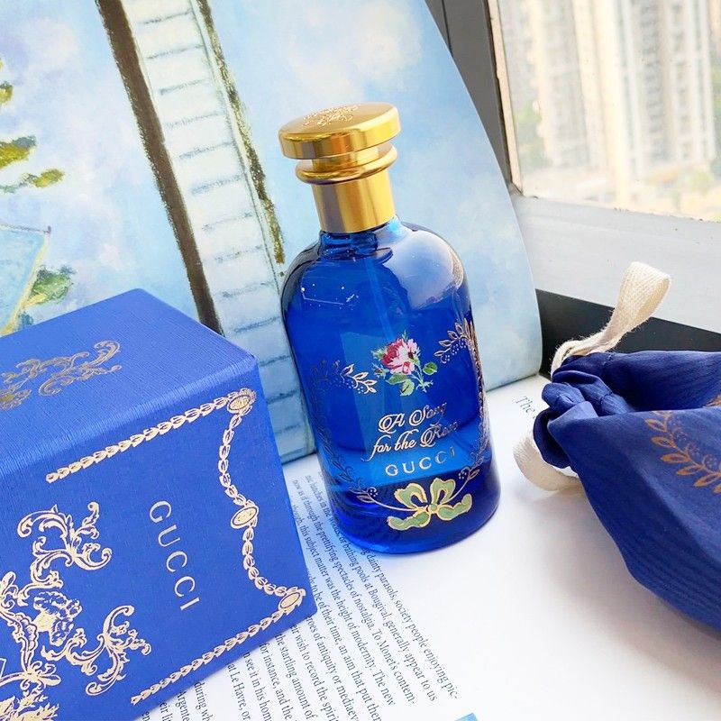 Tất cả ba loại "nước thơm" của bộ sưu tập mới nhất đều được đựng trong các hộp đựng quý giá được trang trí bằng những dải nụ hồng lạ mắt từ họa tiết hoa hồng đặc trưng của Gucci. Được làm thủ công từ thủy tinh sơn mài màu ngà, những chiếc chai được thiết kế đặc biệt, gợi nhớ đến những chiếc lọ đựng nước hoa đầu tiên được trưng bày trên kệ gỗ của các tiệm thuốc cổ.