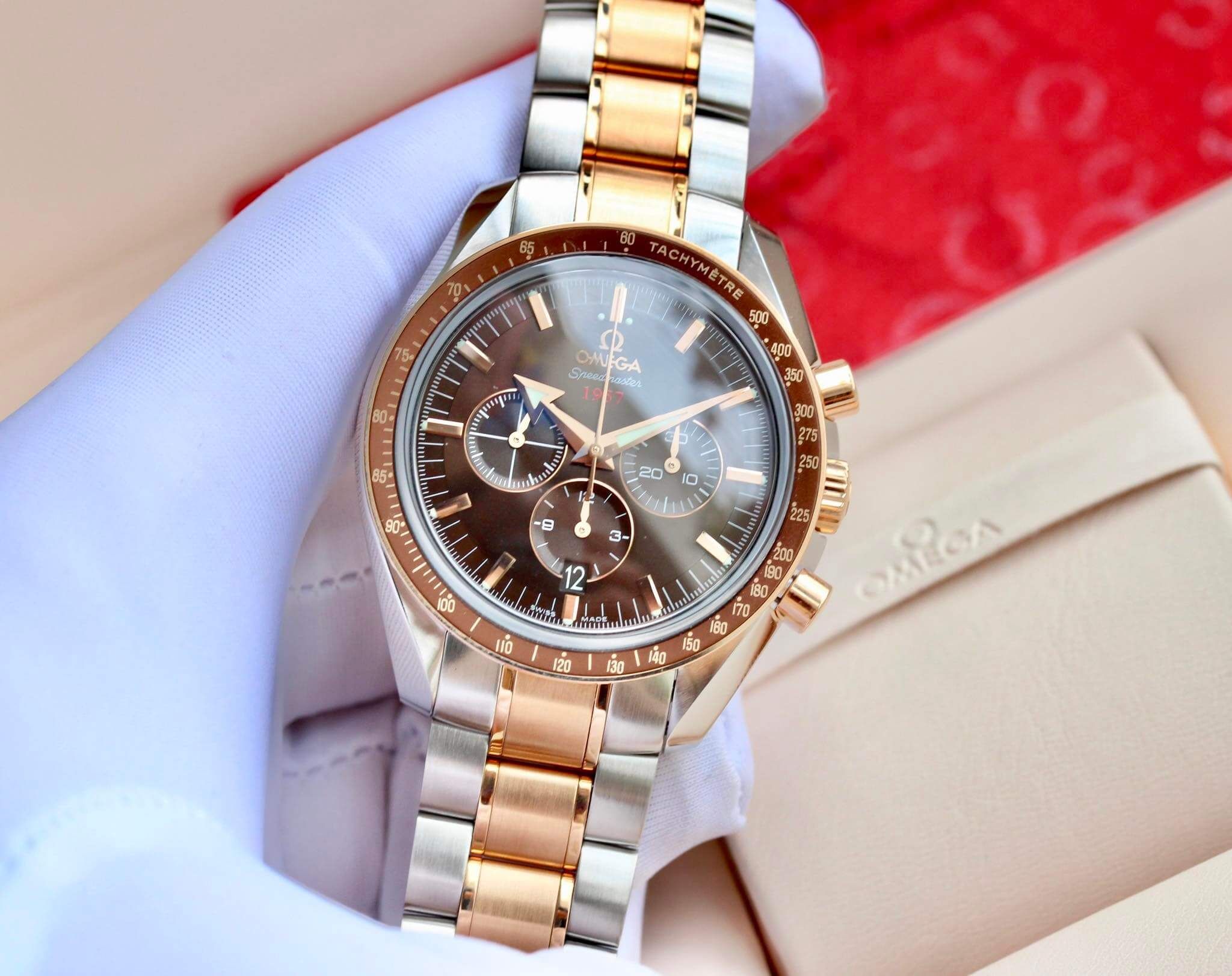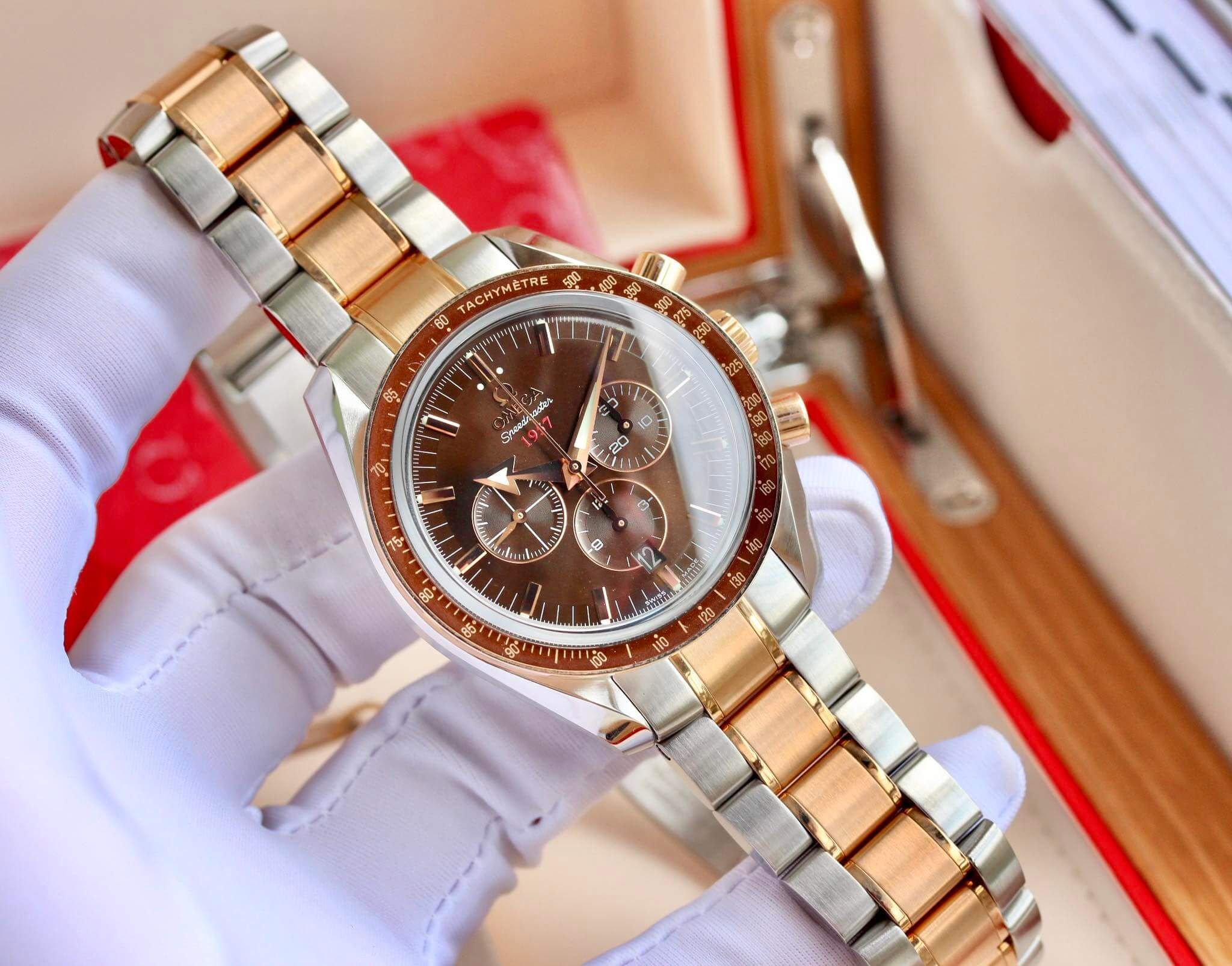 Cập bến mẫu Omega Speedmaster tone dial nâu chocolate tuyêt đẹp
