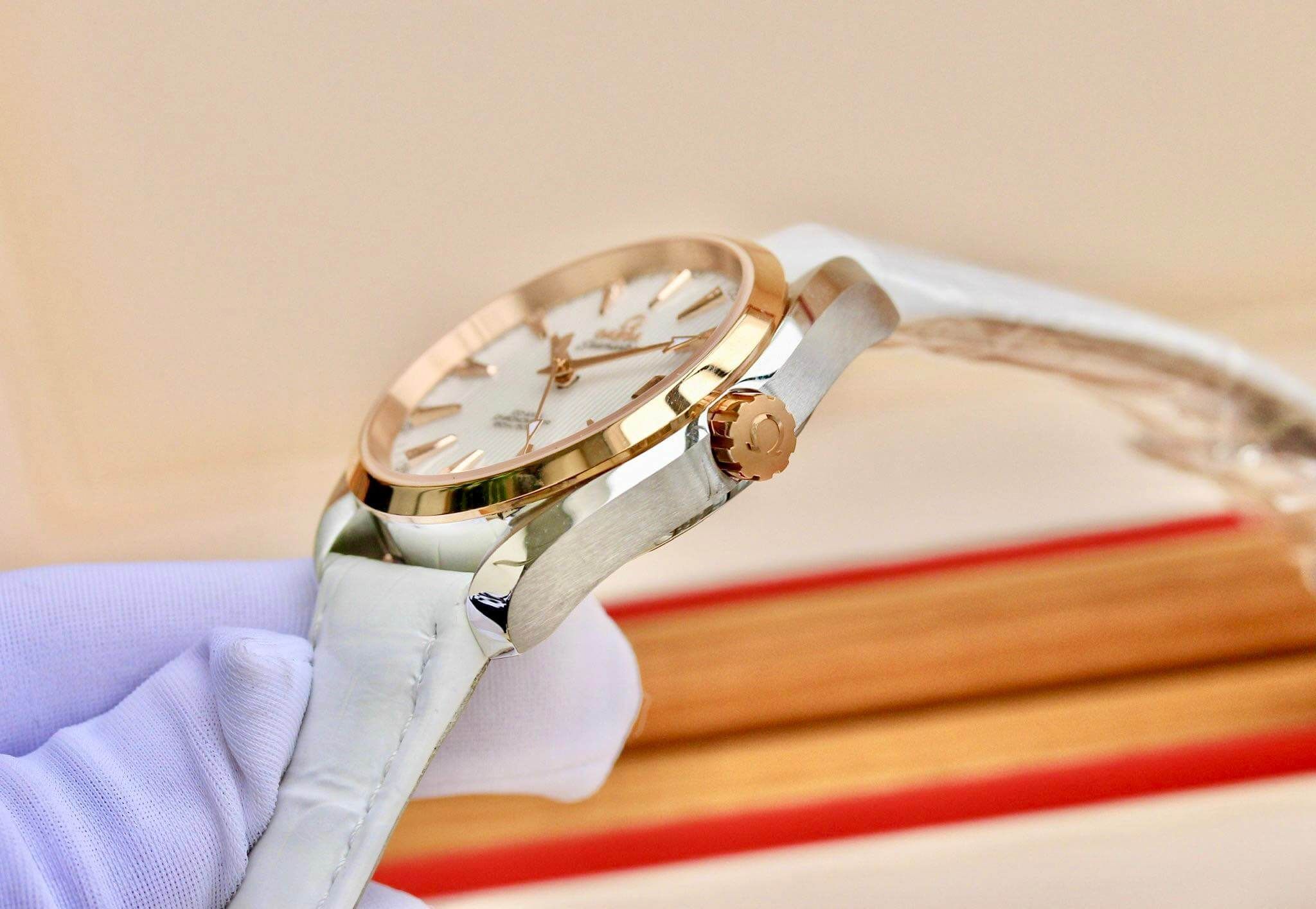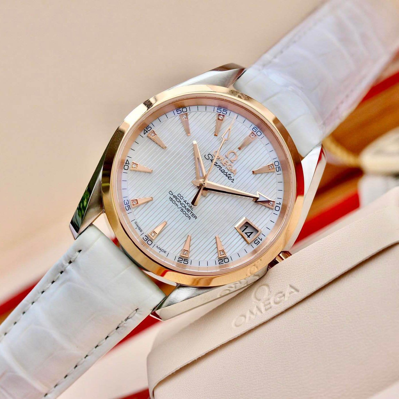 “Thân em vừa trắng lại vừa tròn” – Seamaster vân kẻ dọc với mặt & dây trắng sang trọng.