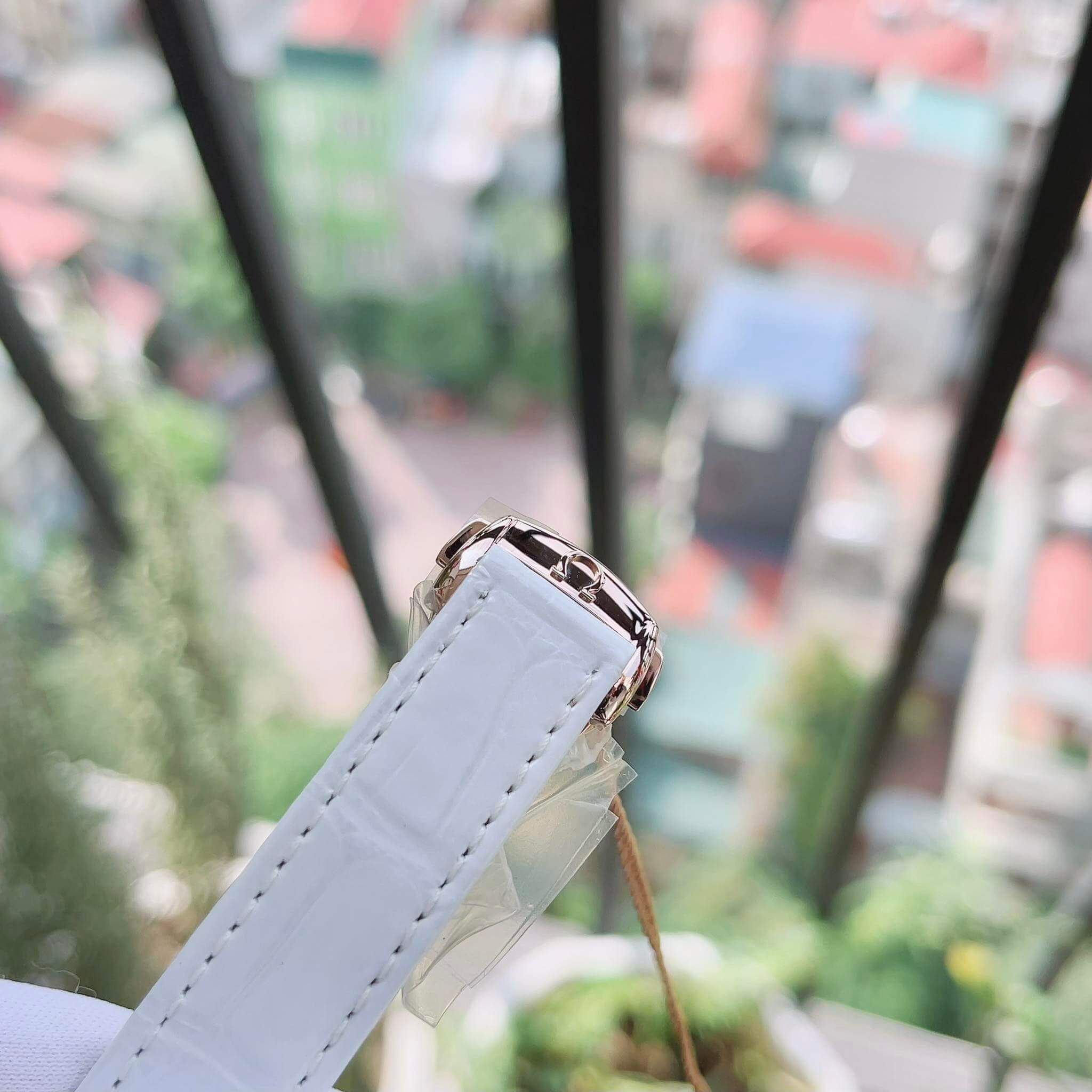 Mặt ngọc trai tuyệt đẹp, cọc số đính Kim cương tròn, lịch ngày góc 6h cân đối