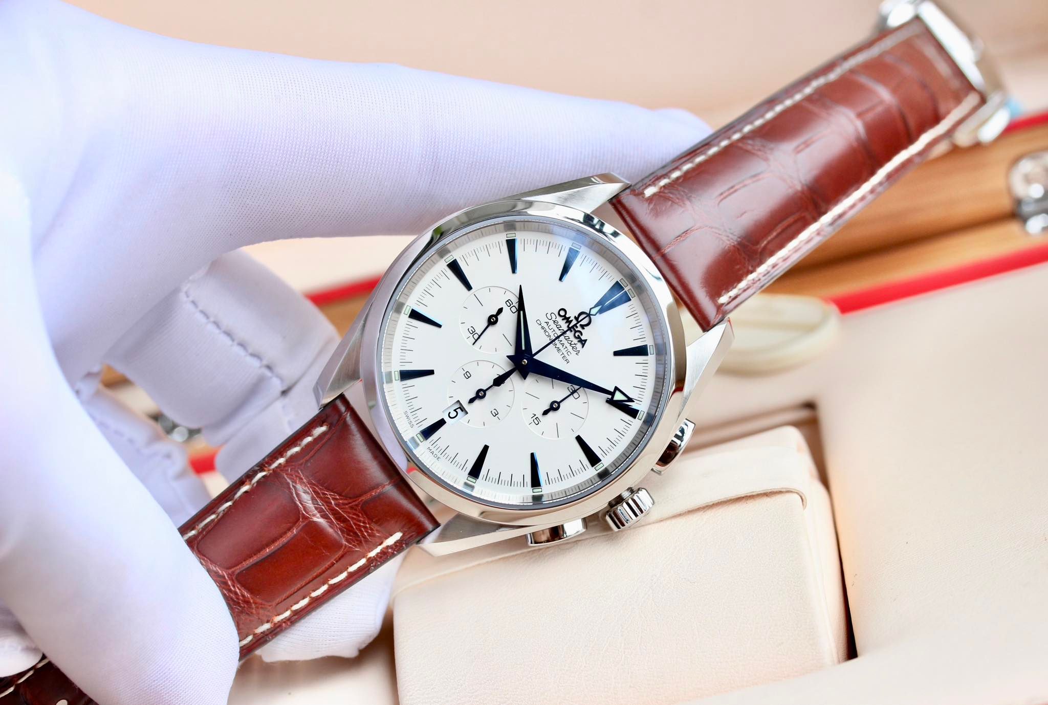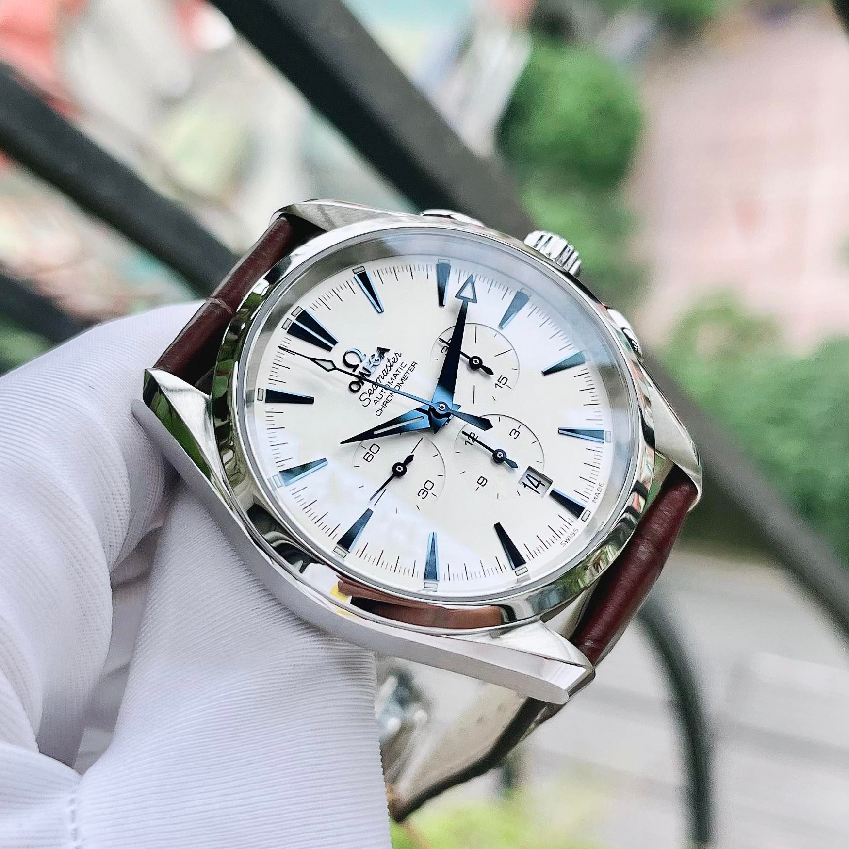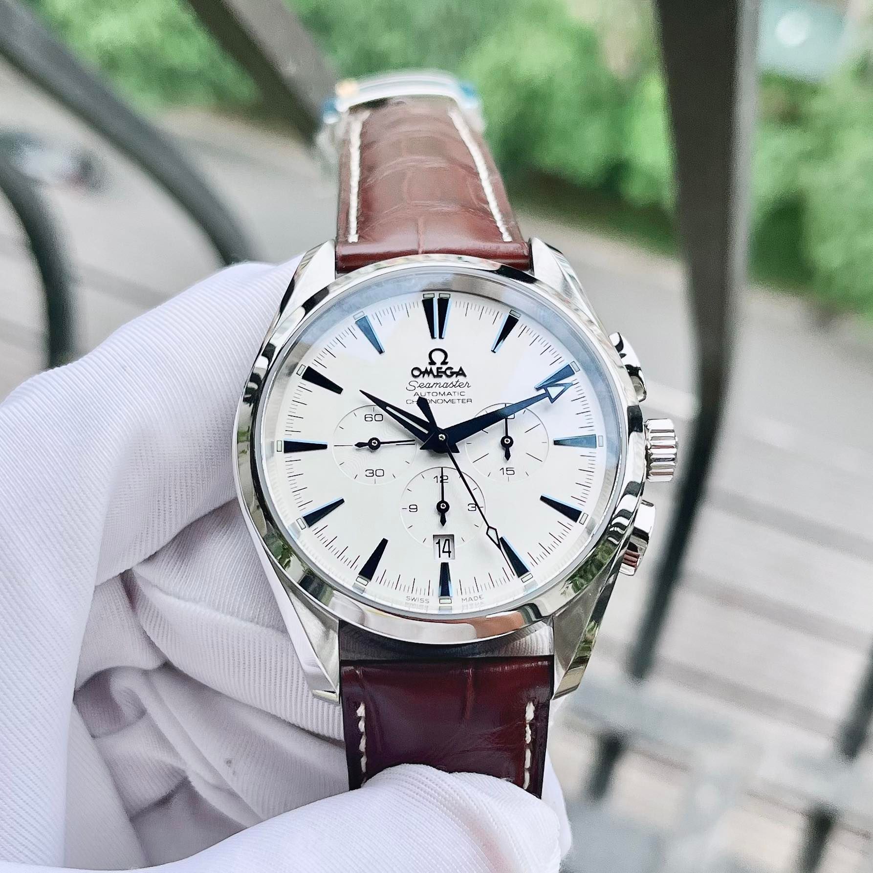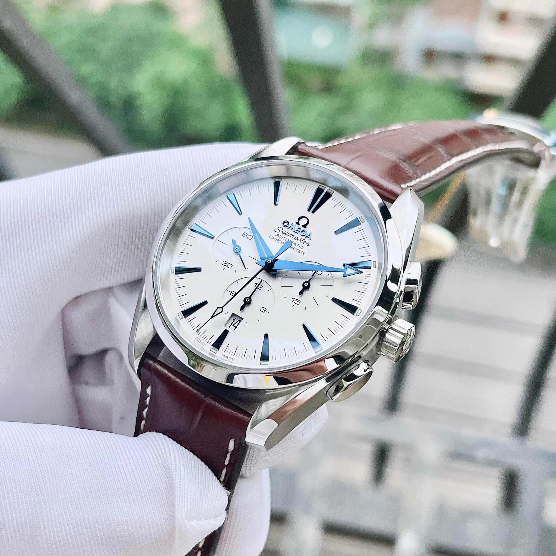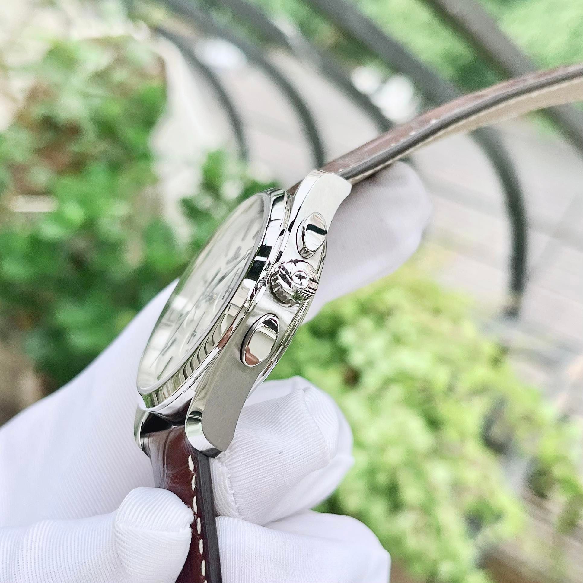 - Mặt trắng kim nung xanh tuyệt đẹp- Máy Automatic 3301, với 33 chân kính , 28800 vph , 55h tích cót (chronograph collumn-wheel trứ danh)