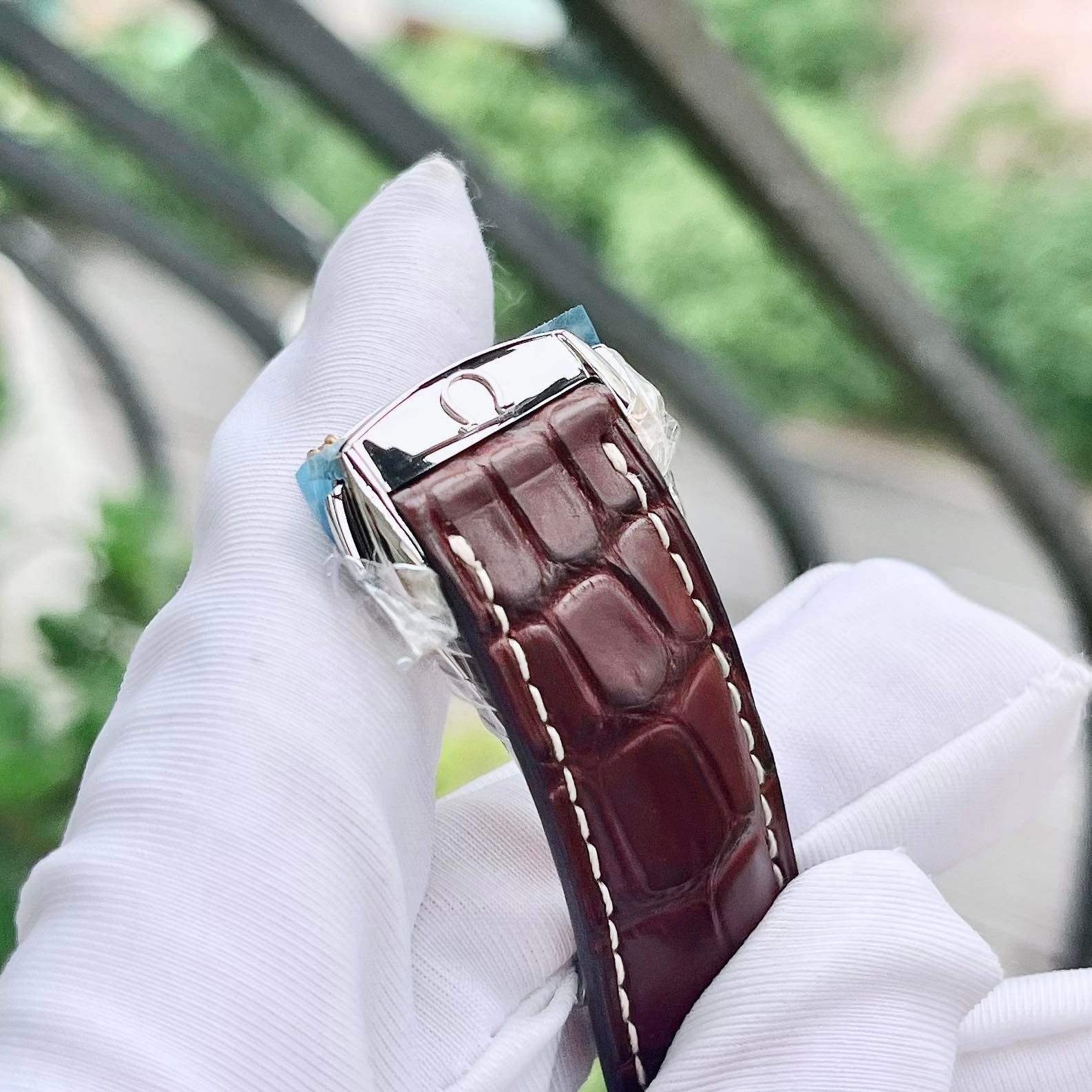 - Vỏ thép không gỉ Size 42mm , độ dày vỏ 14,5mm với dây đeo bằng da cá sấu màu nâu