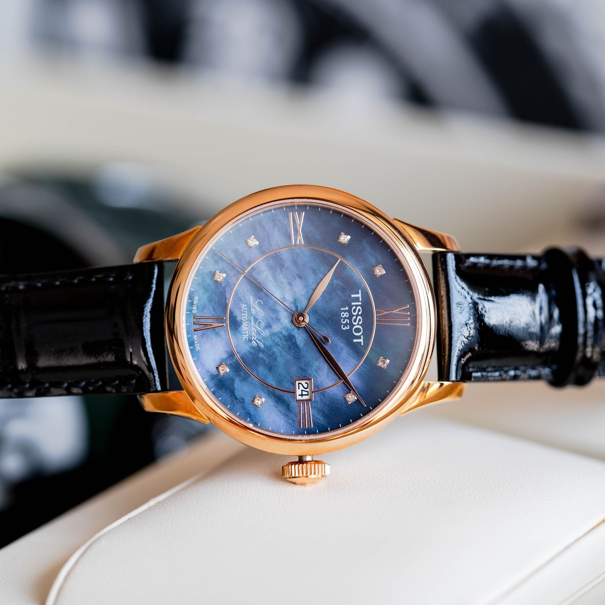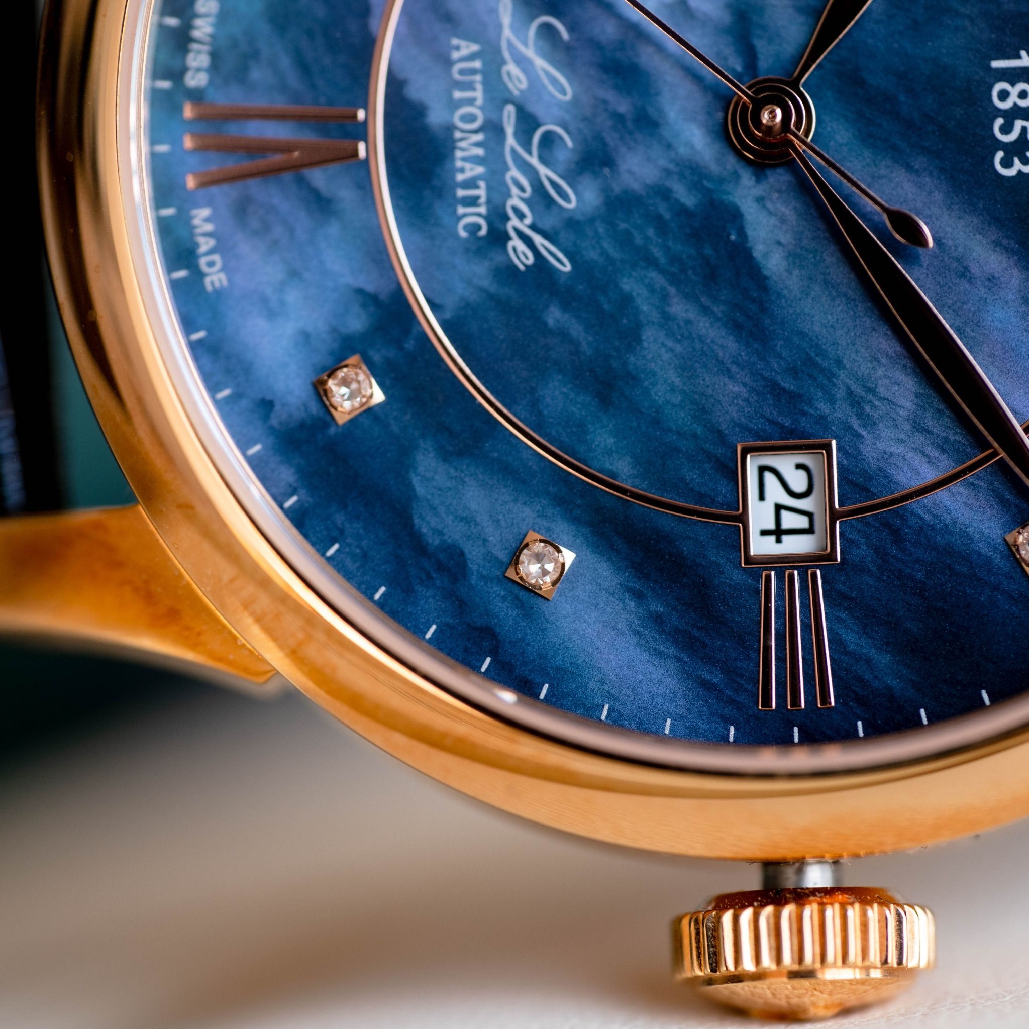 Thuộc dòng Le Locle huyền thoại, mang nét đẹp độc đáo và đẳng cấp thực sự khác biệt với dial khảm xà cừ (khảm trai) màu hiếm có và cọc số đính kim cương sang trọng