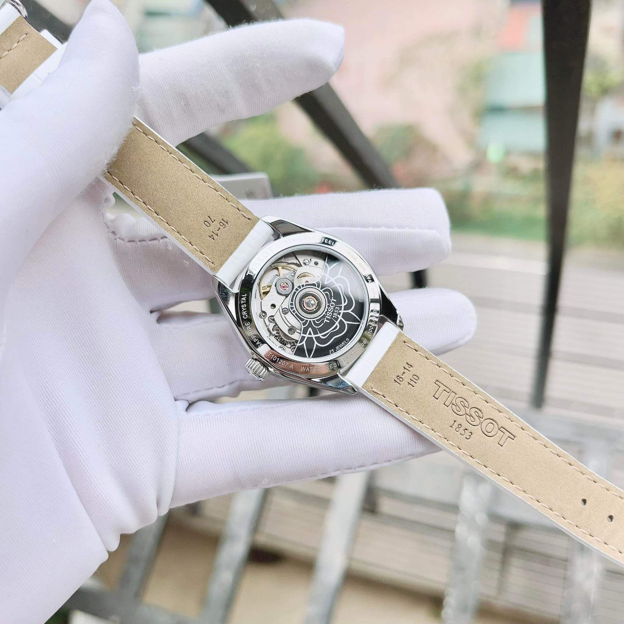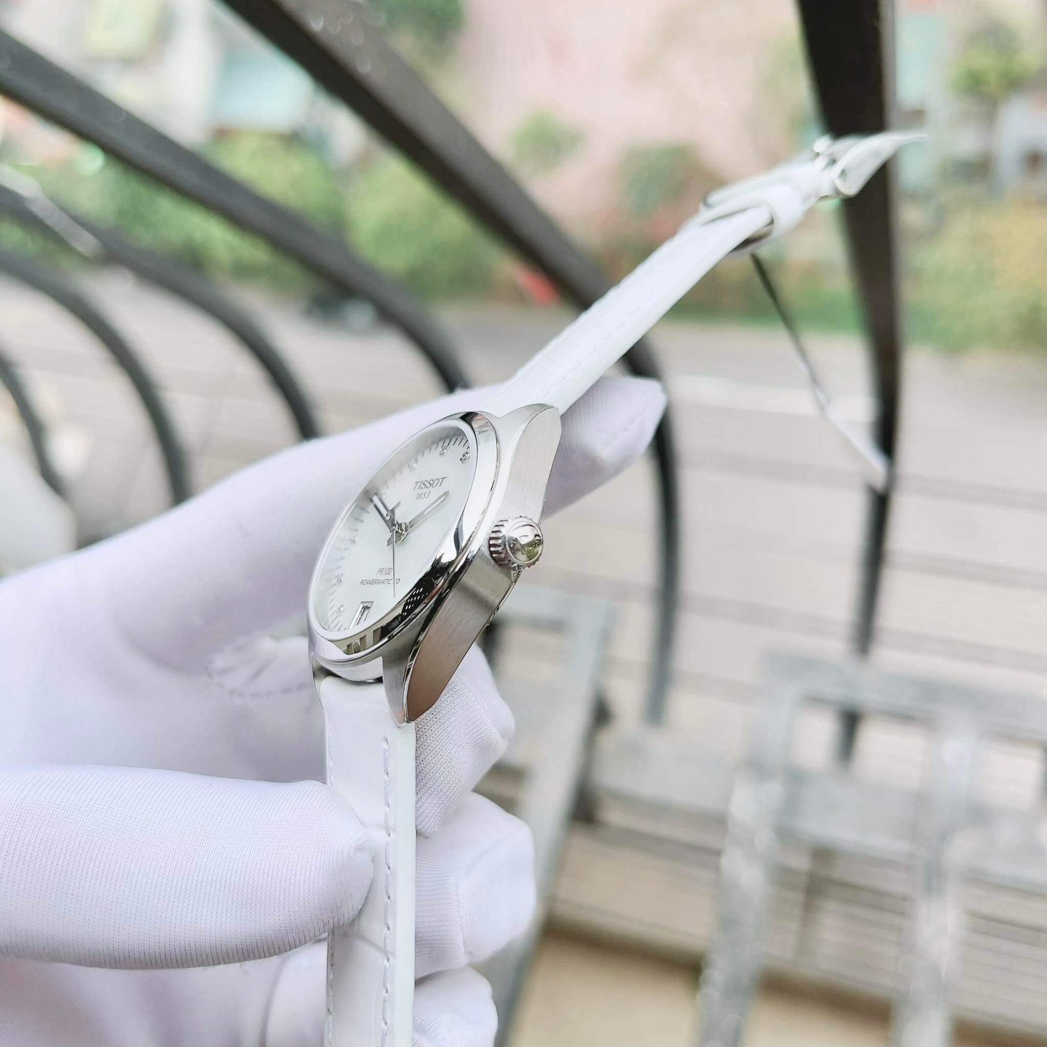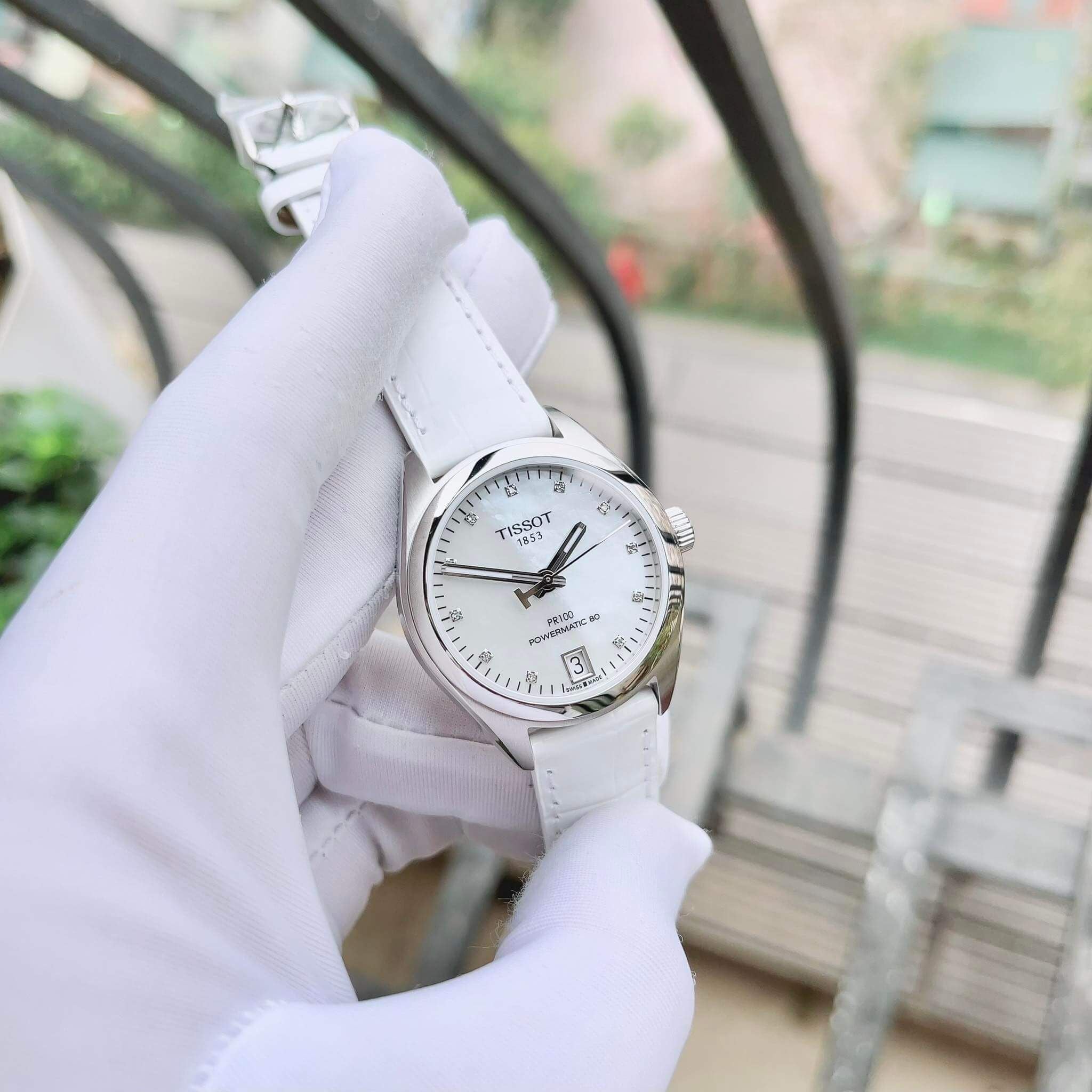 Tissot trắng tinh khôi – điểm nhấn mặt khảm trai MOP và cọc số đính kim cương