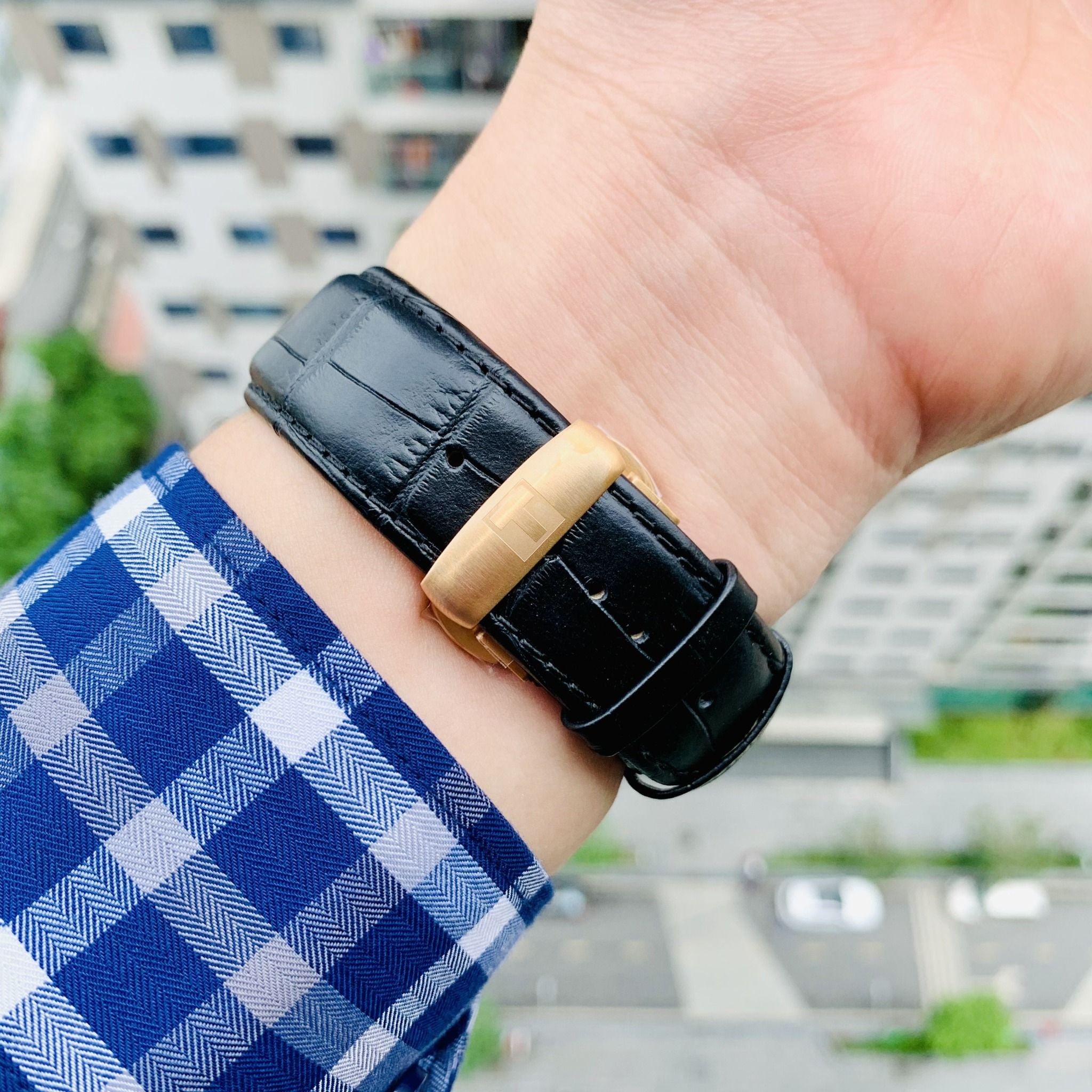 - Dây da đen đi kèm khóa bướm tiện dụng